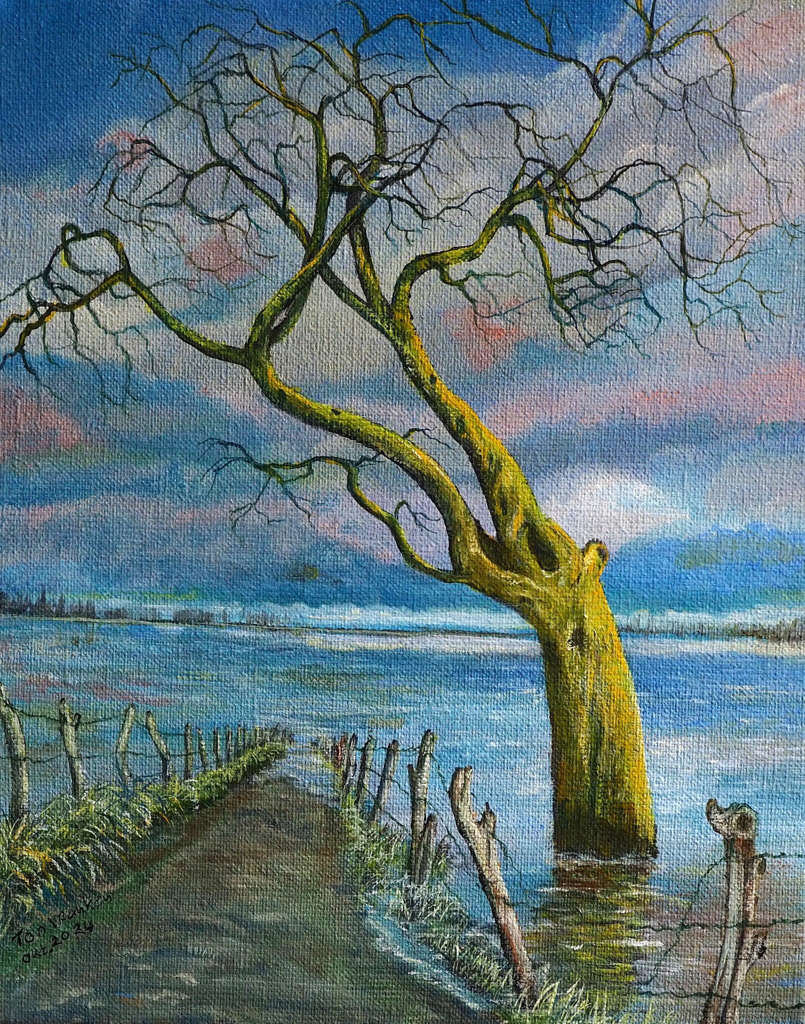Ik schilder alleen het Zuid Limburgs landschap, bij voorkeur zijn dat hoogstambomen, heggen en de Maas met haar zwerfkeien.