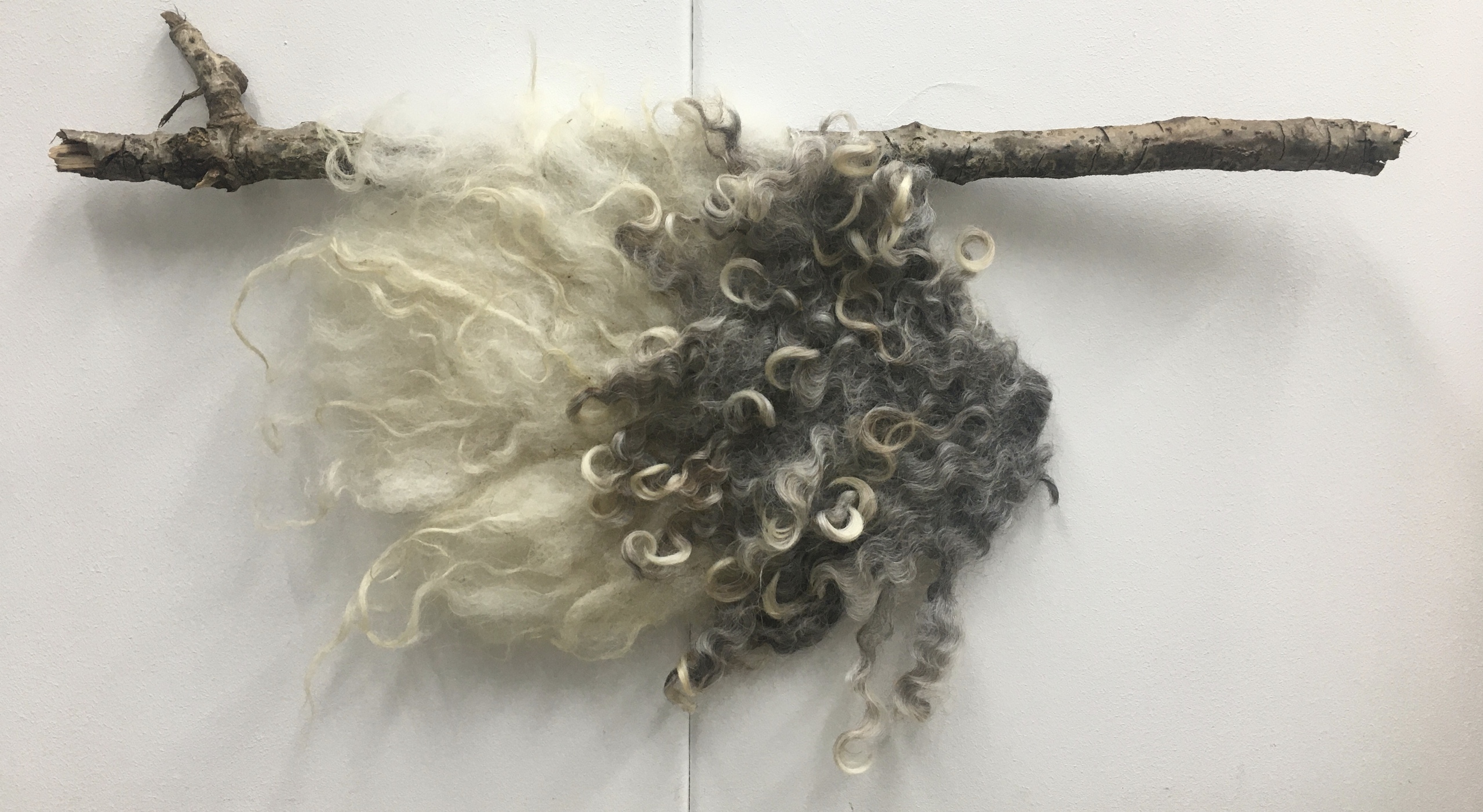 Wit Grijs Vis Wol Natuur Textiel Tak Gevilt Schapenwol Wandhanger