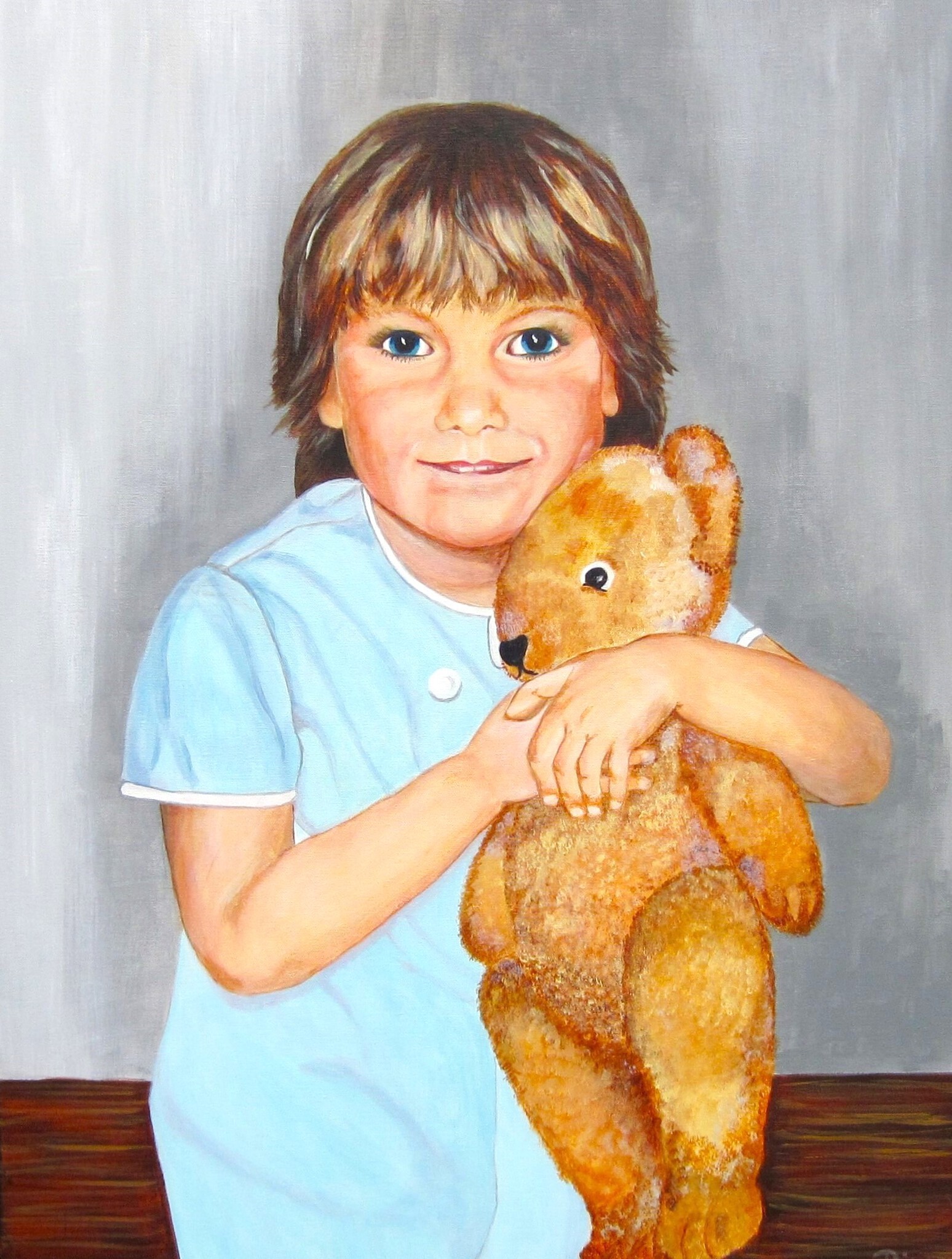 Mijn nichtje Ester toen ze haar Heilige Communie deed, nageschilderd van een zwart wit foto uit 1973.