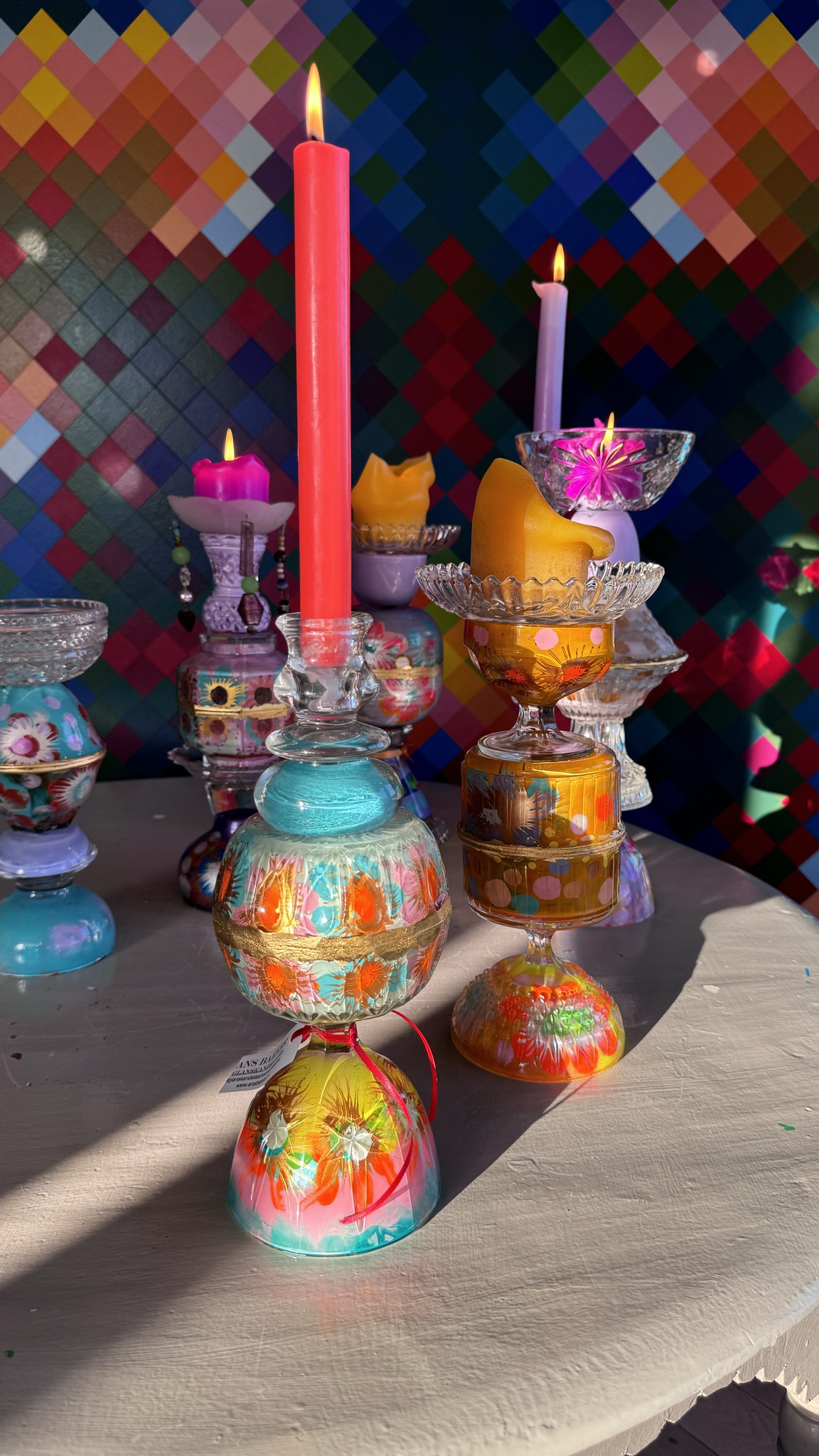 Glanskandelaar turqois oranje