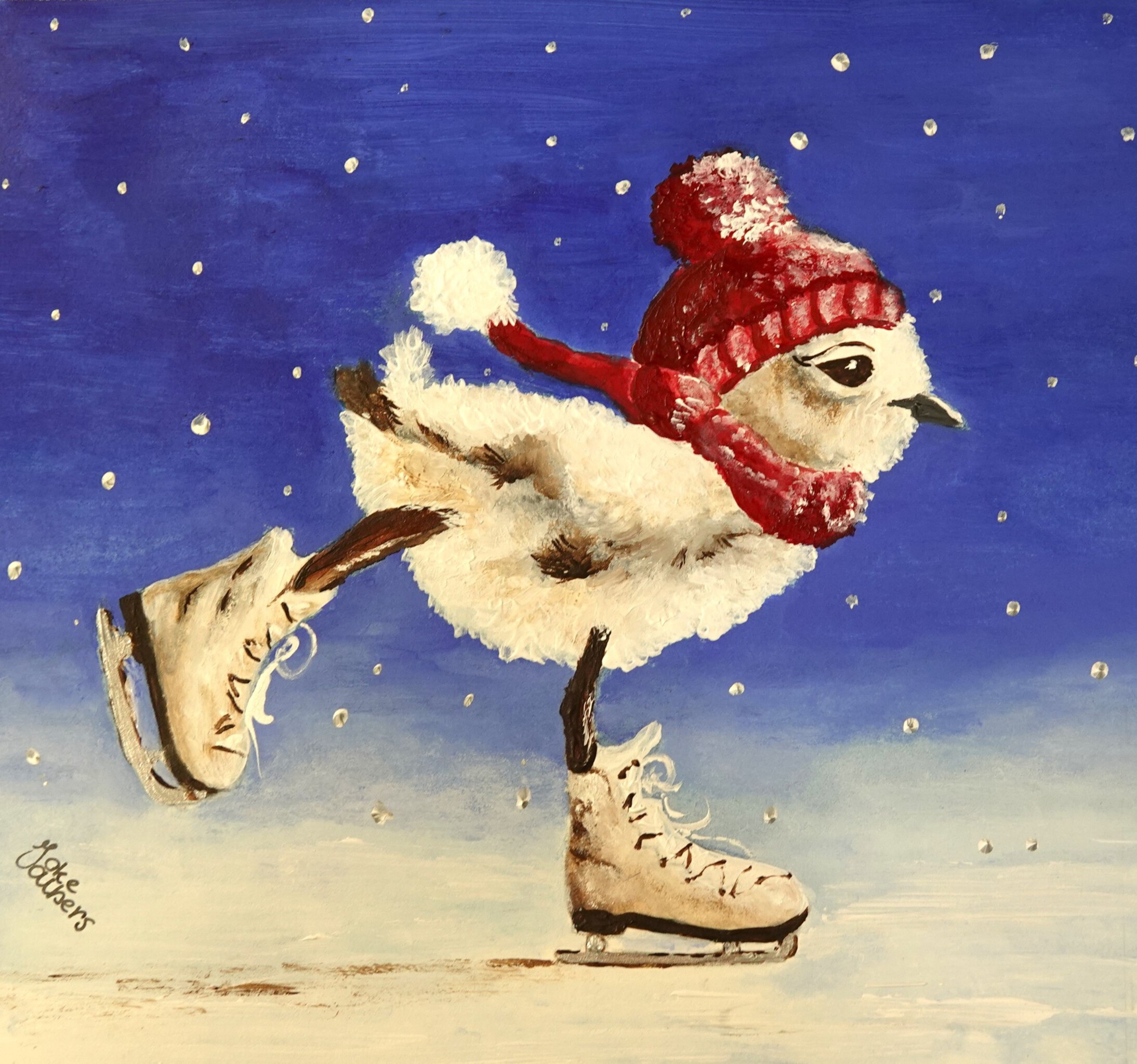 Surreel Sport Sneeuw Winter Avond Schaatsen Kuiken Kerst Koude Schaats Vlokjes