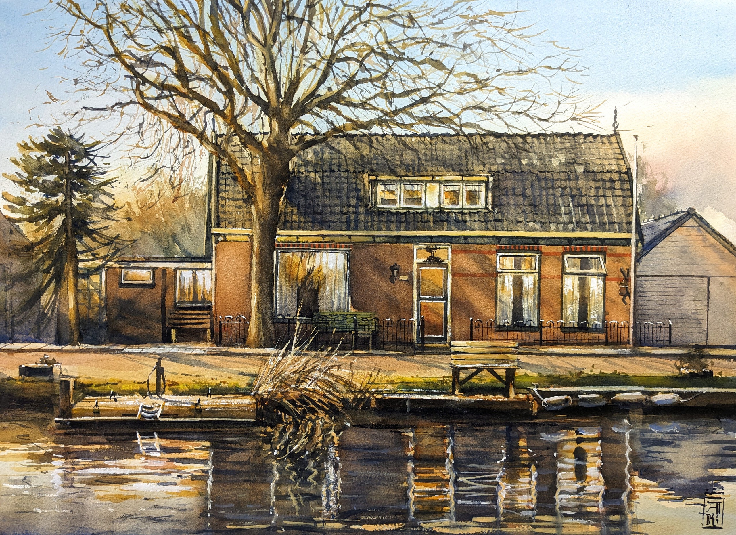Mijn werk is vooral een ode aan het Nederlandse landschap, de steden, het water, een enkel buitenlands avontuur. Met de transparantie van aquarel schilder ik licht en kleuren op de mooiste momenten.