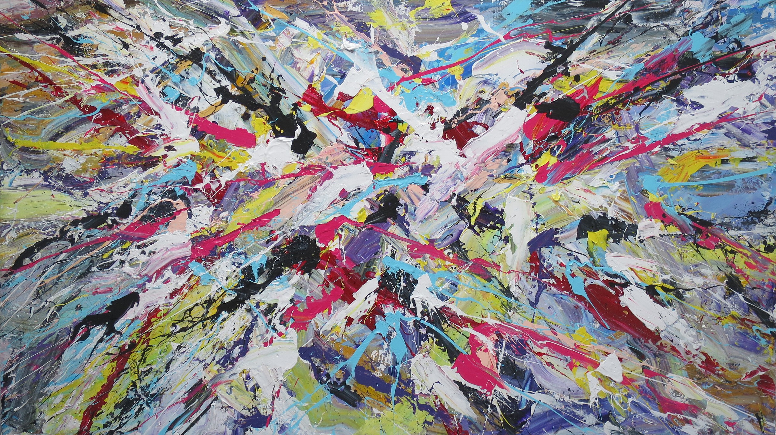 Geinspireerd door Sam Francis en Jackson Pollock Schilderij kan naar wens worden gedraaid Aluminium frame met linnen doek Geschilderd in de Morvan Frankrijk