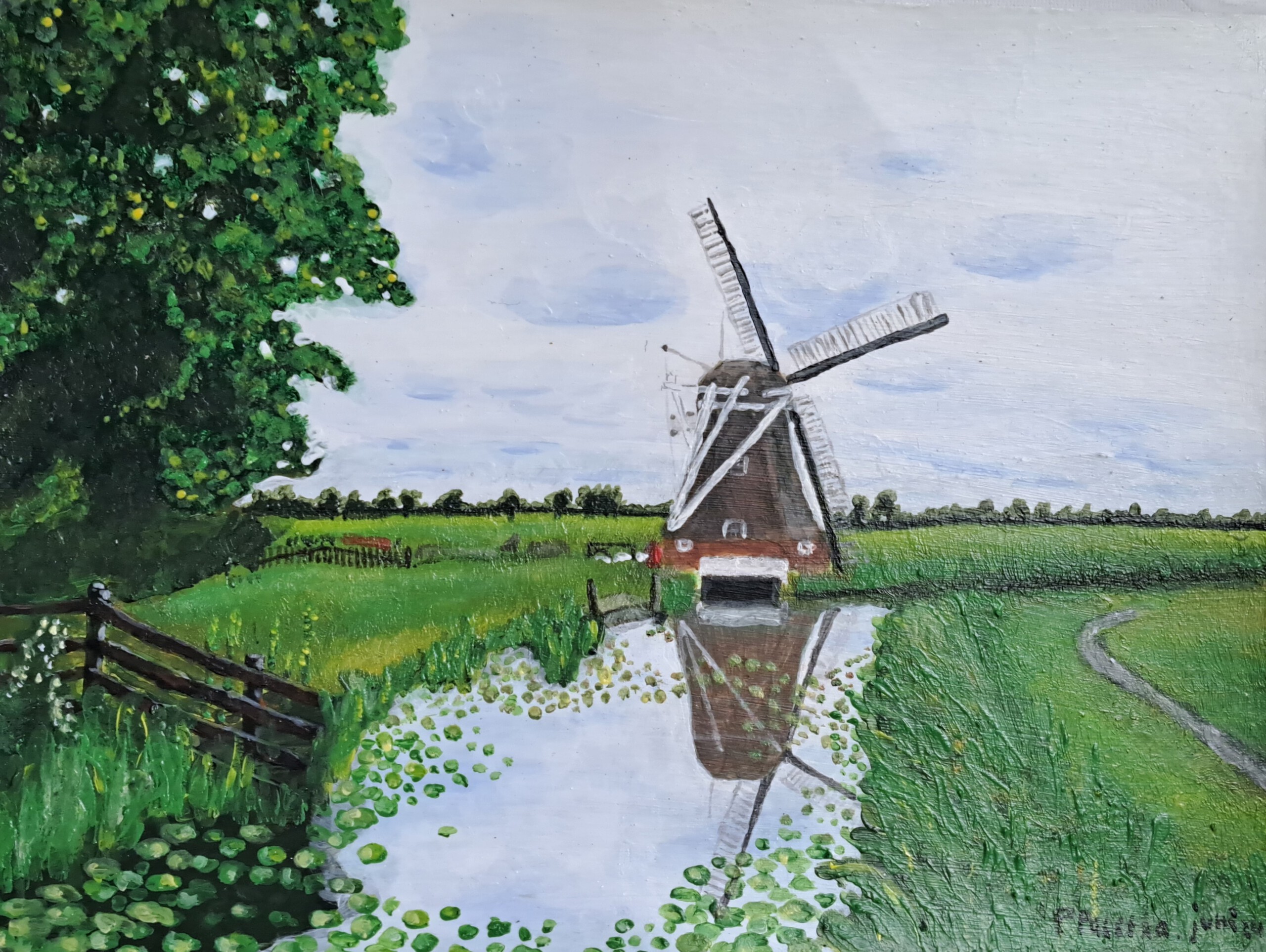 Molen in Hollands polderlandschap.