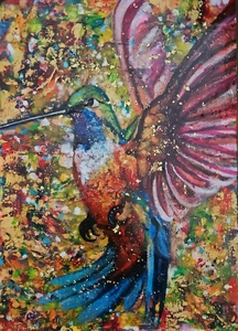 Ik begin met een basisidee en laat me verassen met wat komt. Graag gebruik ik verschillende materialen en veel kleur! Het resultaat is vaak een portret.
