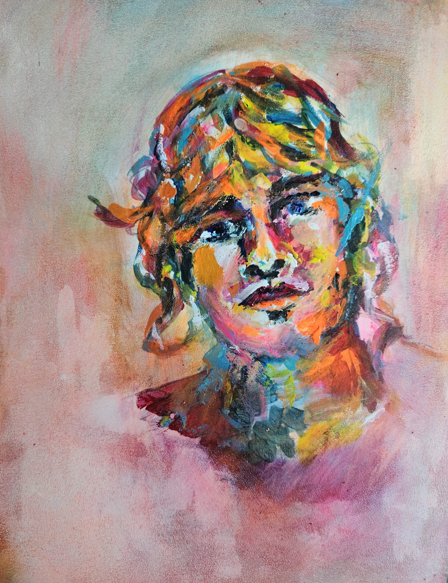 Ik begin met een basisidee en laat me verassen met wat komt. Graag gebruik ik verschillende materialen en veel kleur! Het resultaat is vaak een portret.