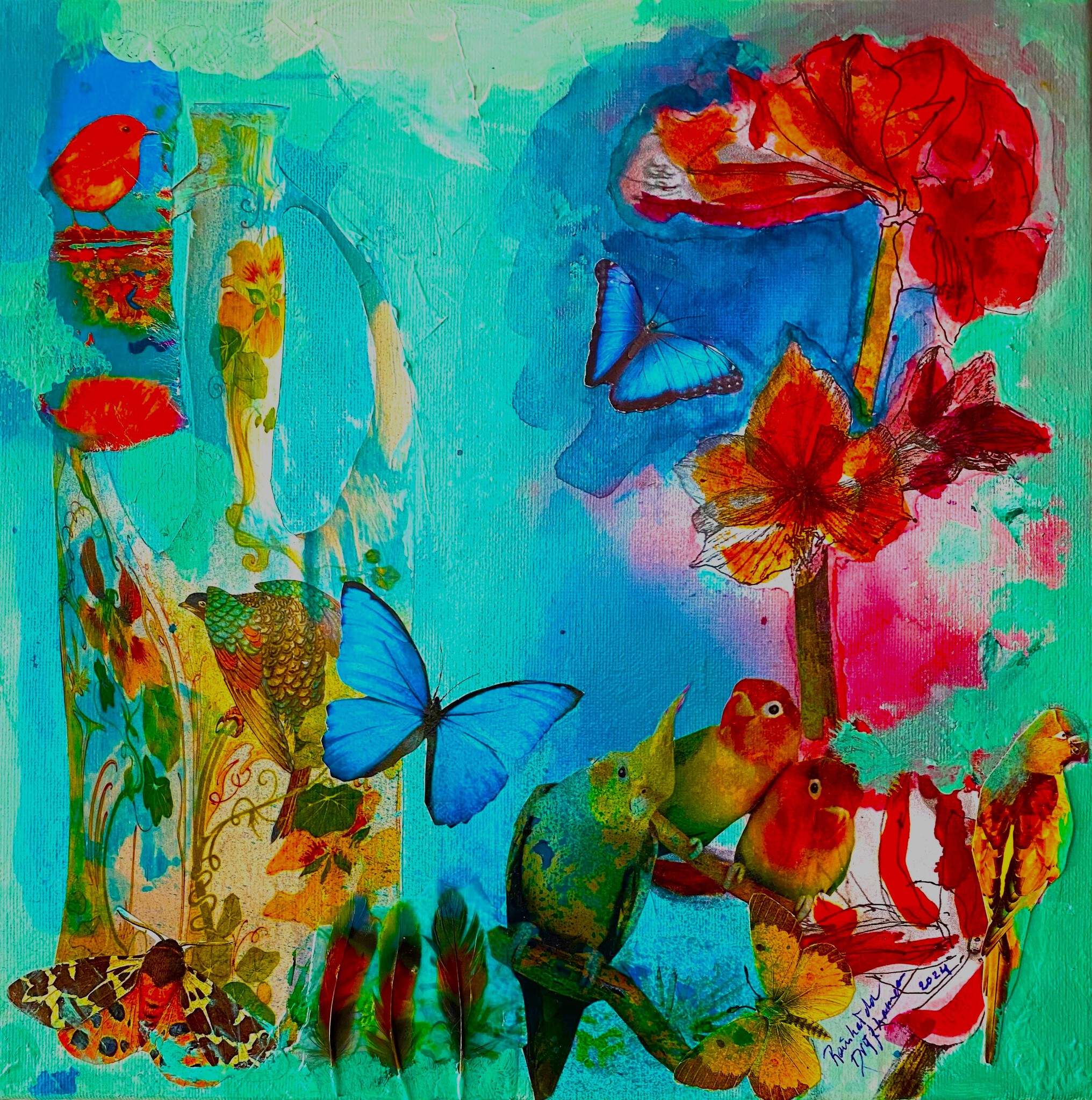 Reinharda Drijfhamer (1957), (woont nu in Frankrijk) is een veelzijdig kunstenares.De hele wereld is haar atelier. Ze schildert, tekent maakt mozaïeken. Ze reageert direct op de mogelijkheden die het landschap of de directe omgeving haar biedt met installaties en projecten, solo of in samenwerking met collega kunstenaars. De processen van haar projecten op locatie legt zij fotografisch vast in haar kunstboeken. Op haar talloze reizen, neemt zij meestal een project mee als bagage : Travelling Flowers is zo'n kunstproject. Drijfhamer volgde de 5 -jarige lerarenopleiding Tehatex, Tekenen en Textiel daarna studeerde zij aan de Kunstacademie (AIVE) Autonome Vormgeving Eindhoven (huidige design academy). Zij was 22 jaar kunstdocente in Nederland en gaf meer dan 125 exposities door heel Europa.