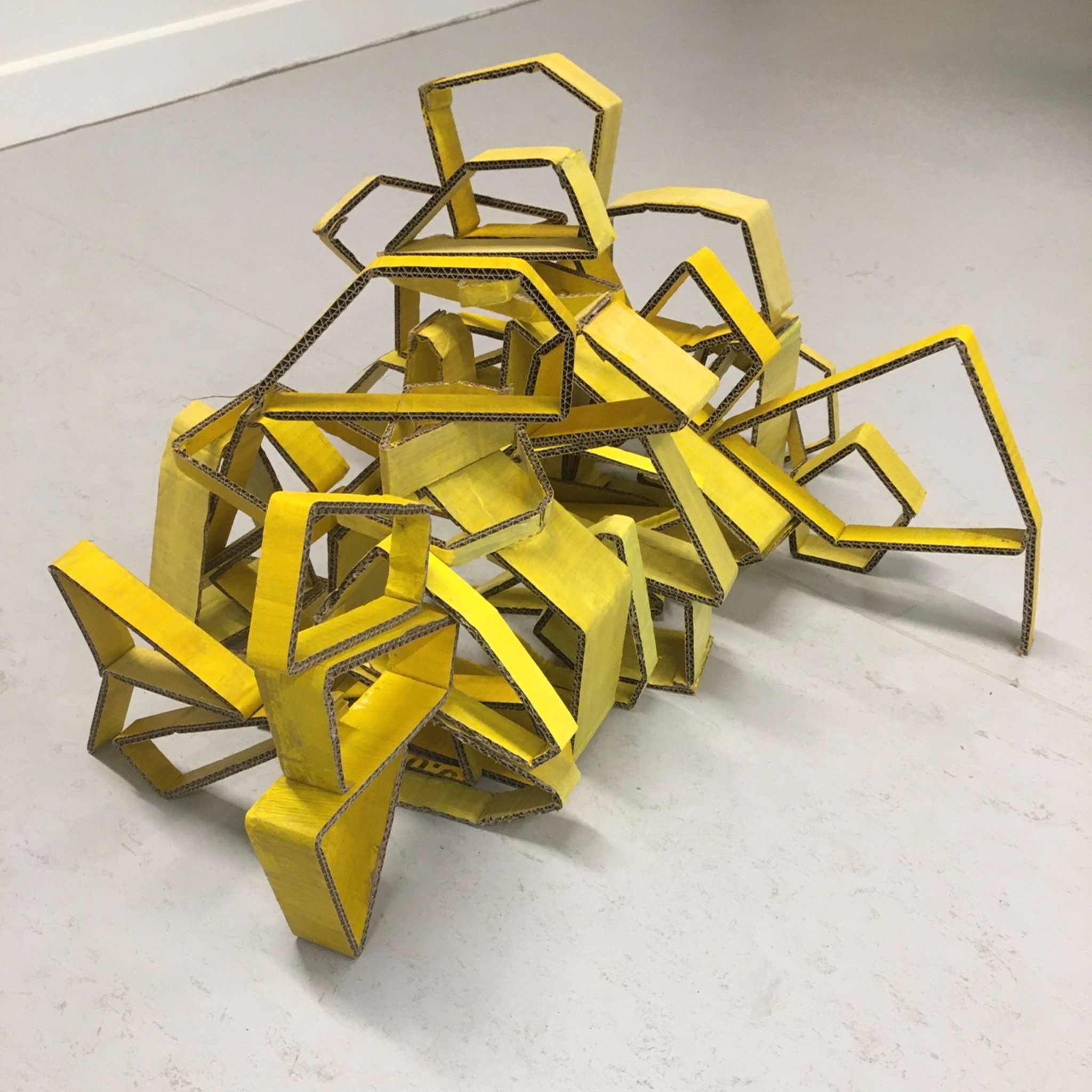 Sculptuur, cardboard, acryl. In deze sculptuur speel ik met lijnen. De losse delen kunnen willekeurig opgebouwd worden waardoor lijnen, licht, kleur en vorm een belangrijk uitgangspunt zijn.