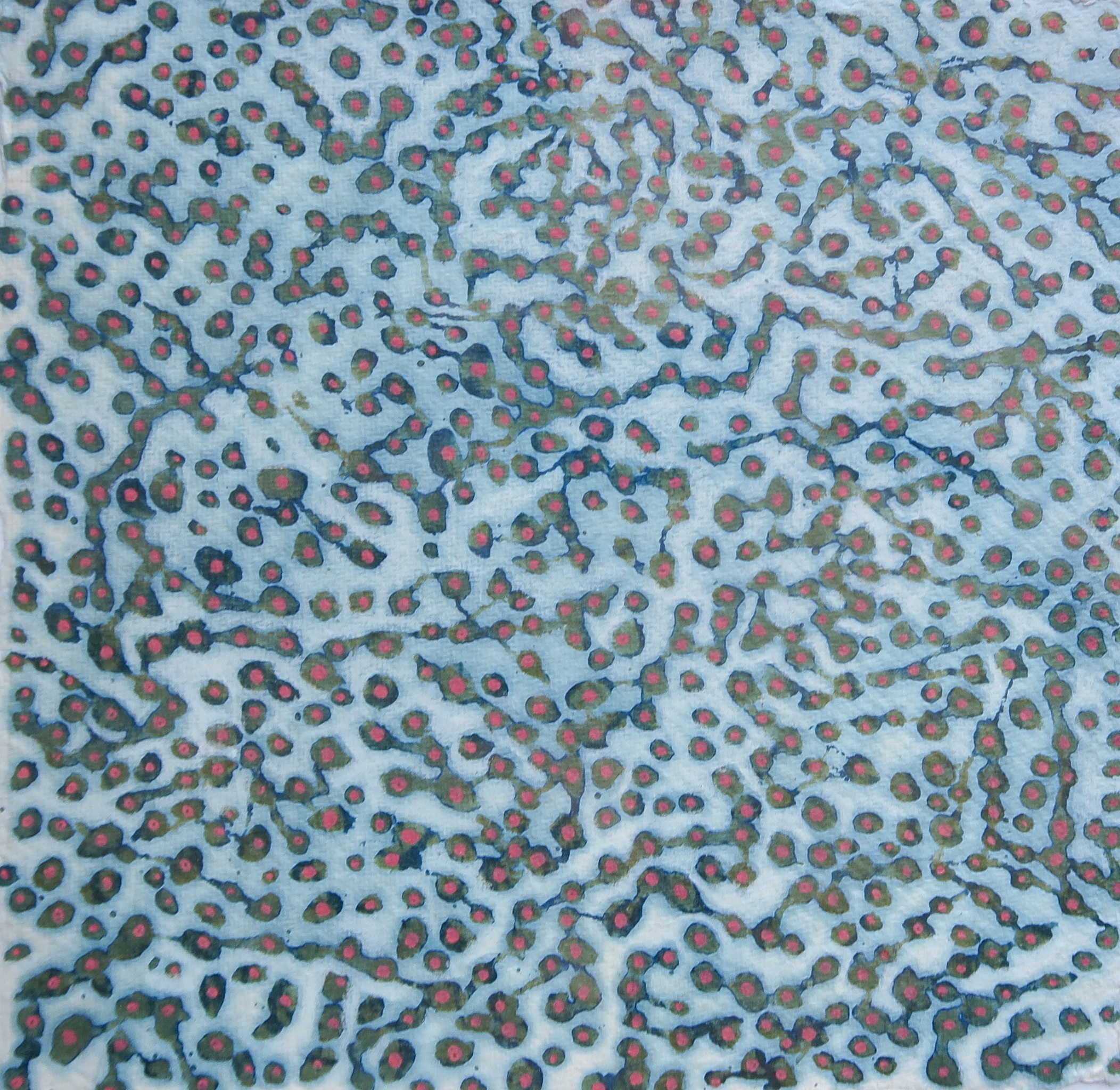 Natuur Onder De Grond Wit Blauw Rood Connecties Punten Begin Mixed Media Op Handgeschept Papier