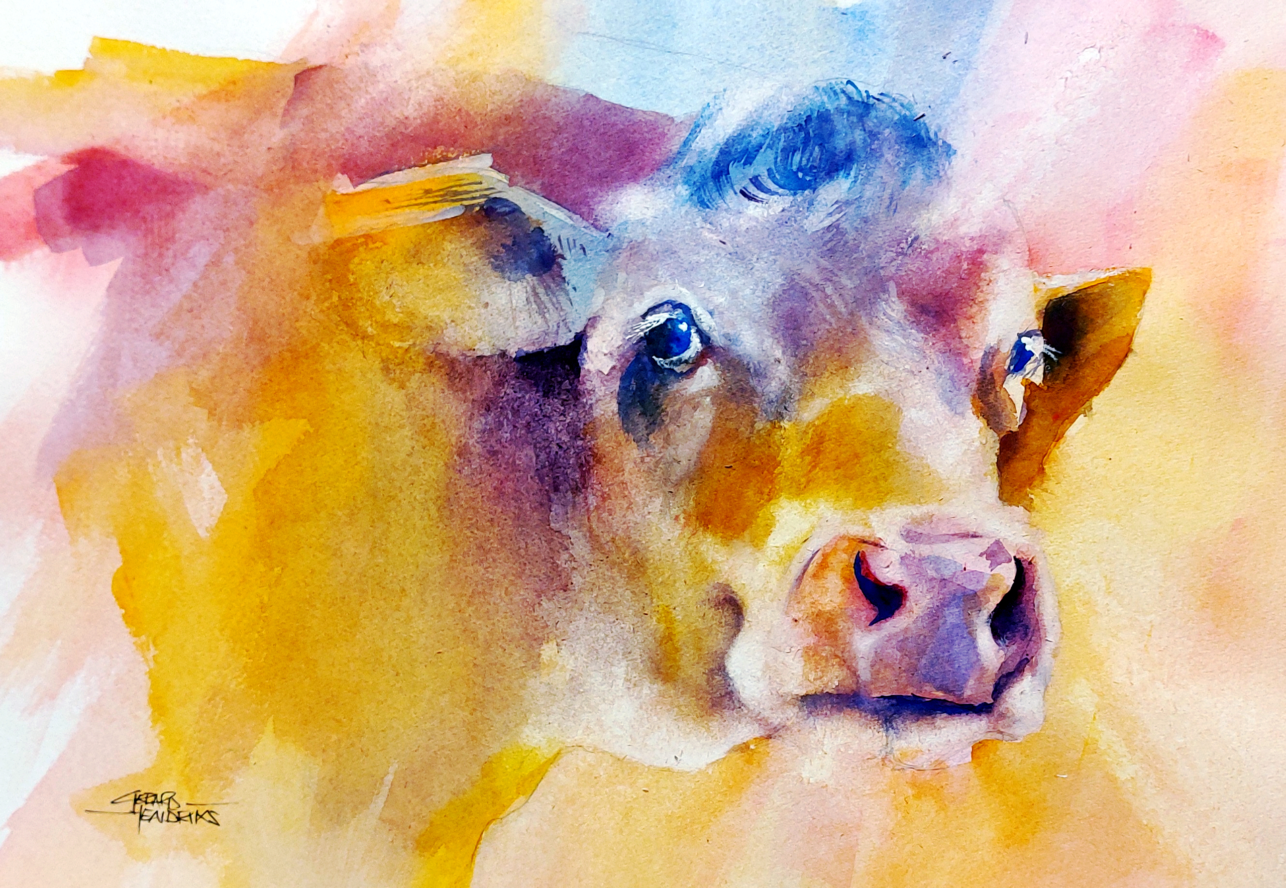 Cow Koe Geel Paars Blauw Aquarel
