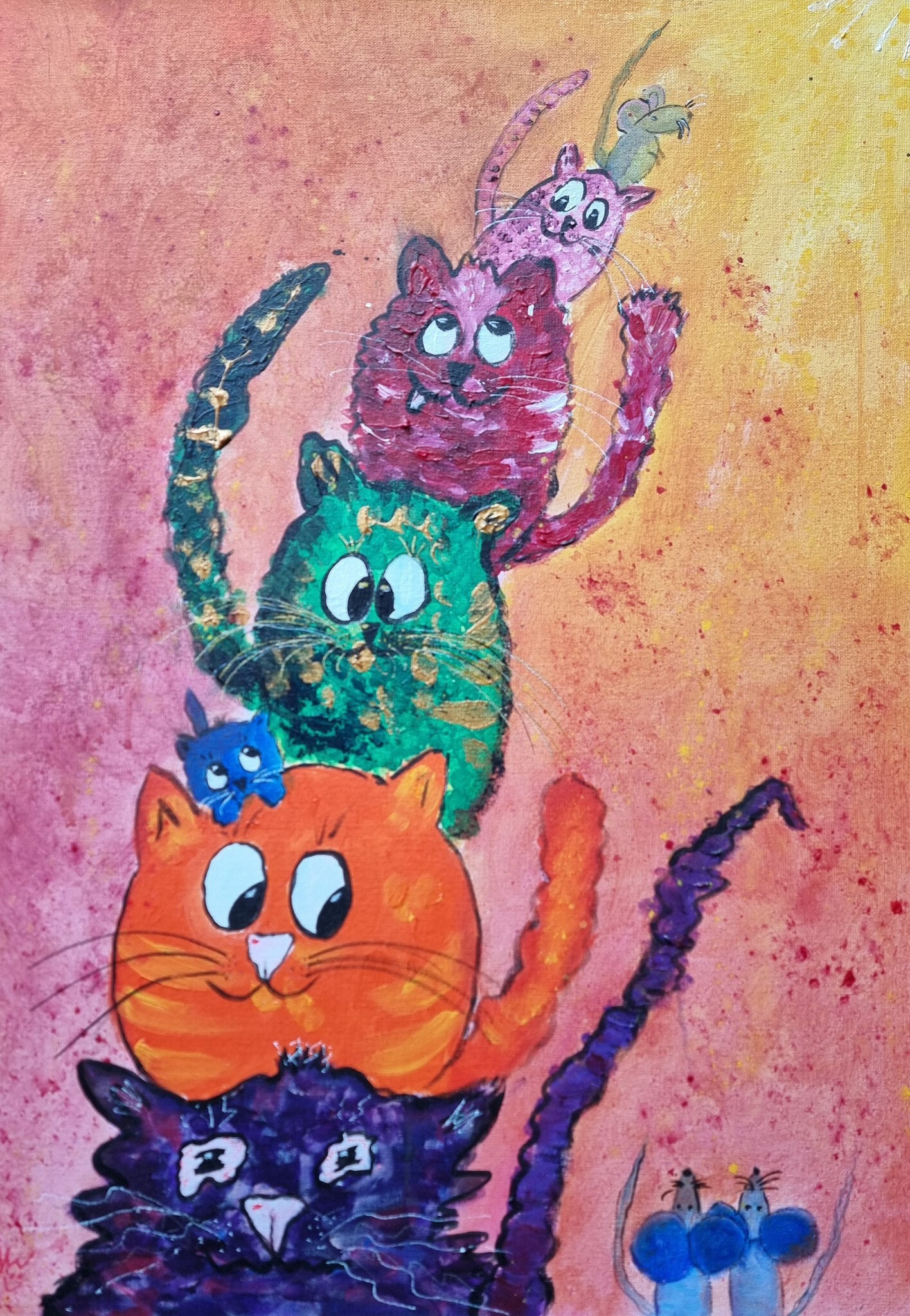 Sinds augustus 2020 ben ik, Nicole, gaan schilderen dus dat is nog vrij kort. Nog nóóit een kwast vastgehouden. Ik hou van kleur en van lachen, dat probeer ik in al mijn schilderijen weer te geven.