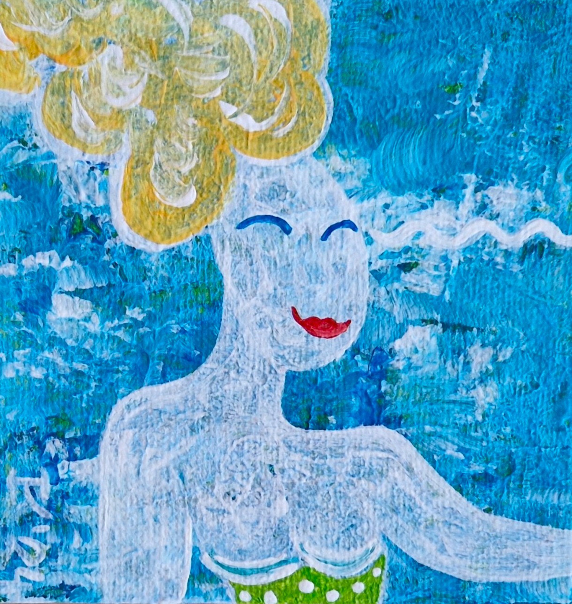 Acrylverf op katoen, 10 bij 10 cm, Pictoright. Werkje kan opgehangen worden. De prijs is exclusief verzendkosten.