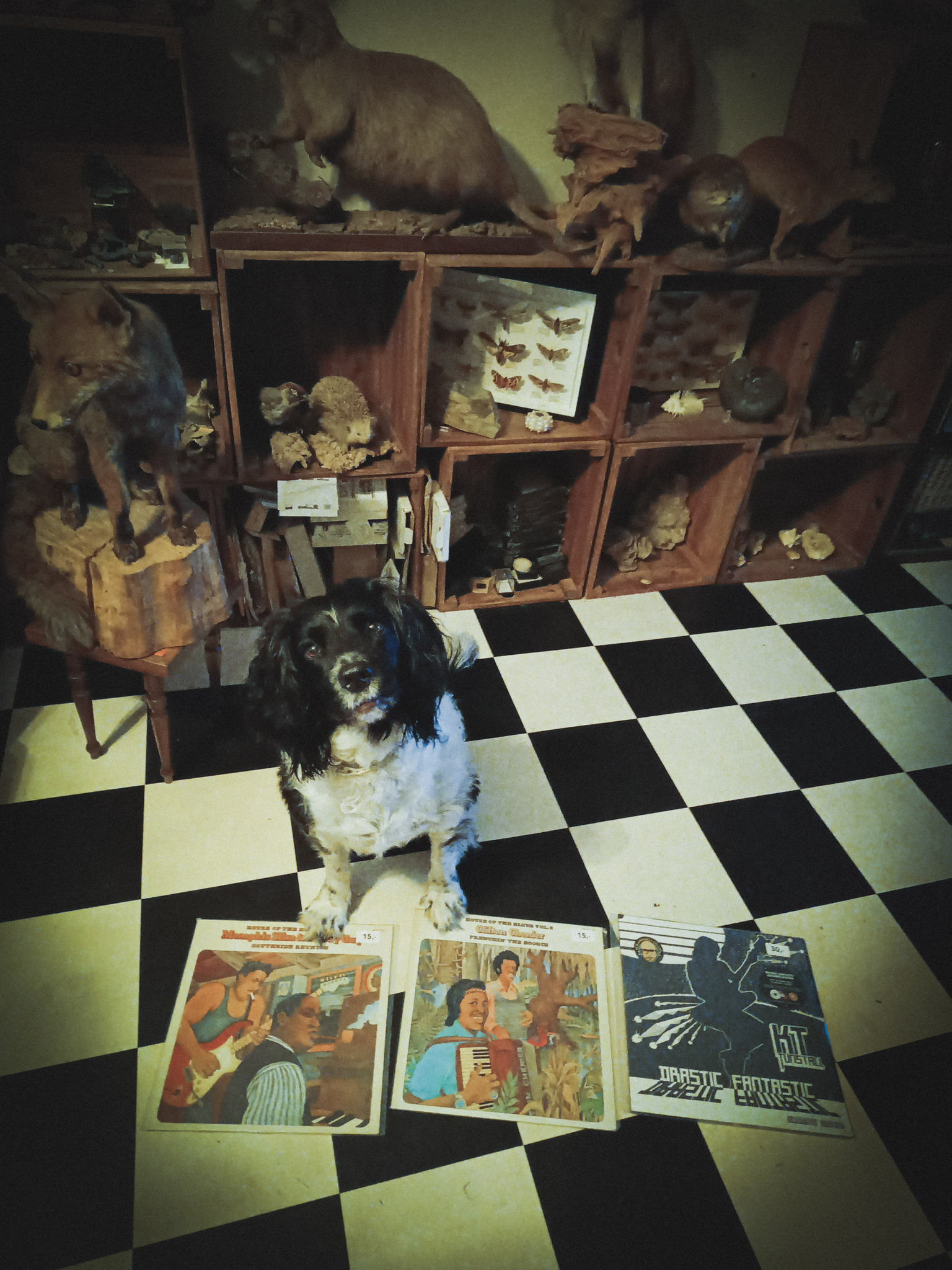 Cuddle the dog and his vinyl collection 46