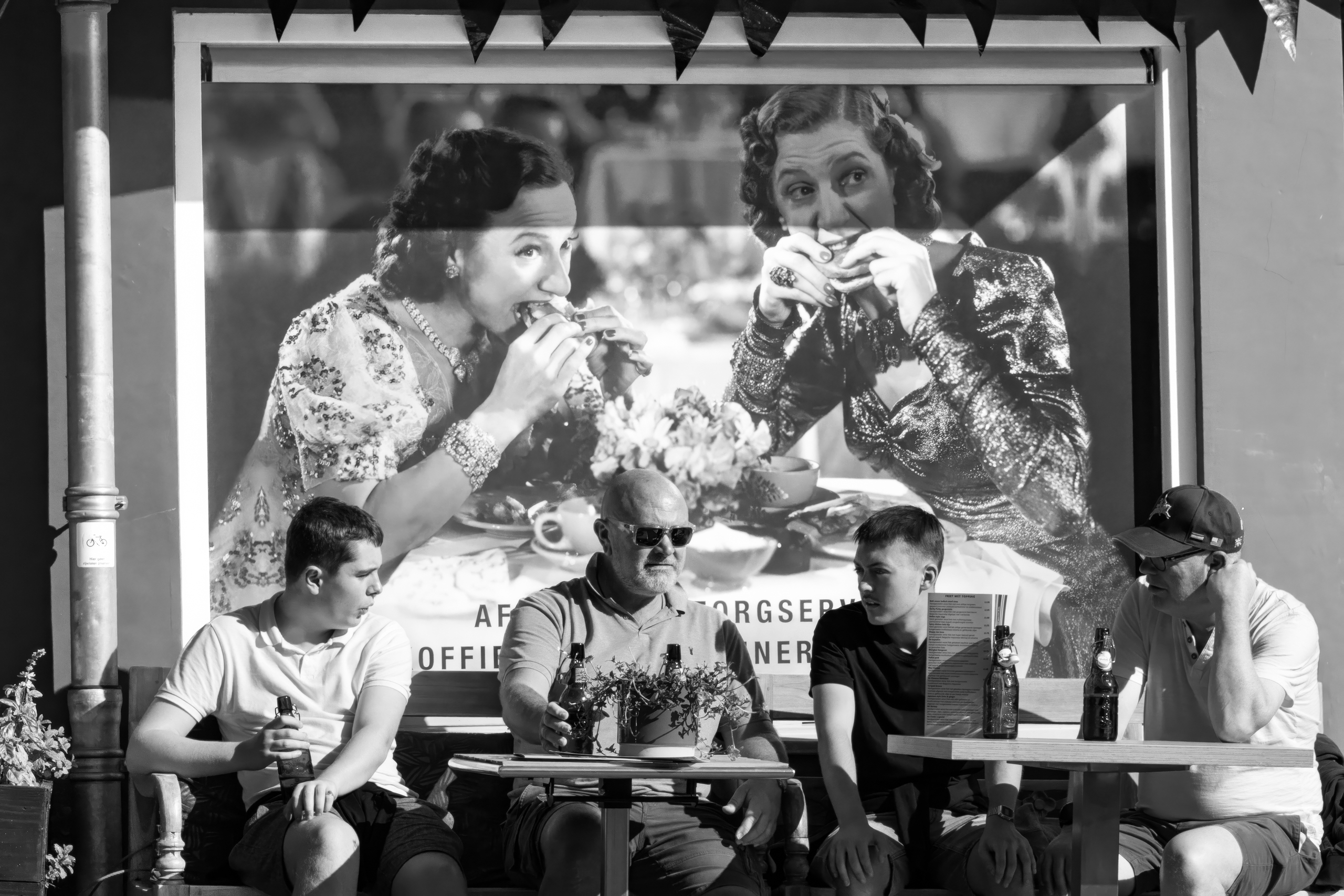 Compositie Terras Bier Drinken Oosterbeek Zwart-wit