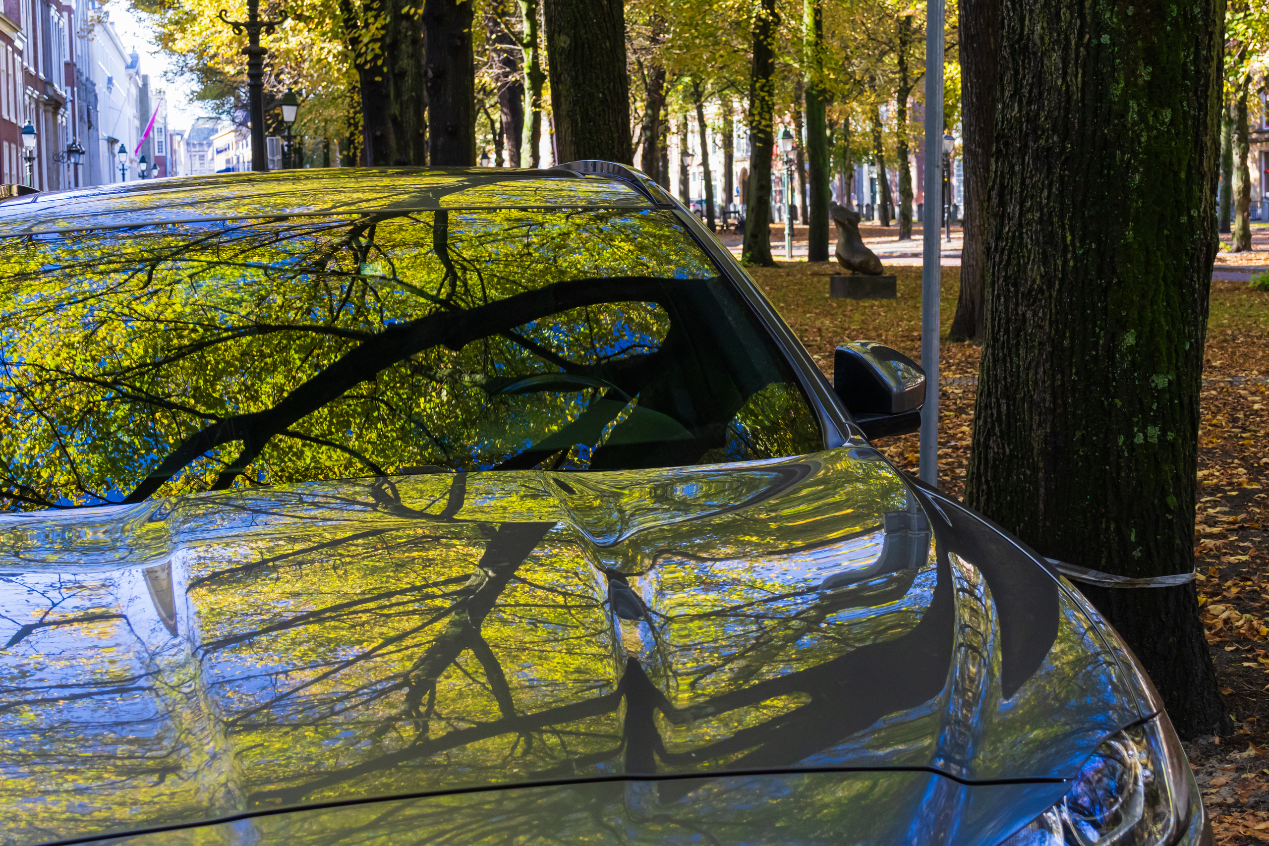 Natuur Herfst Auto Weerspiegeling Den Haag Lange Voorhout Herfstbladen