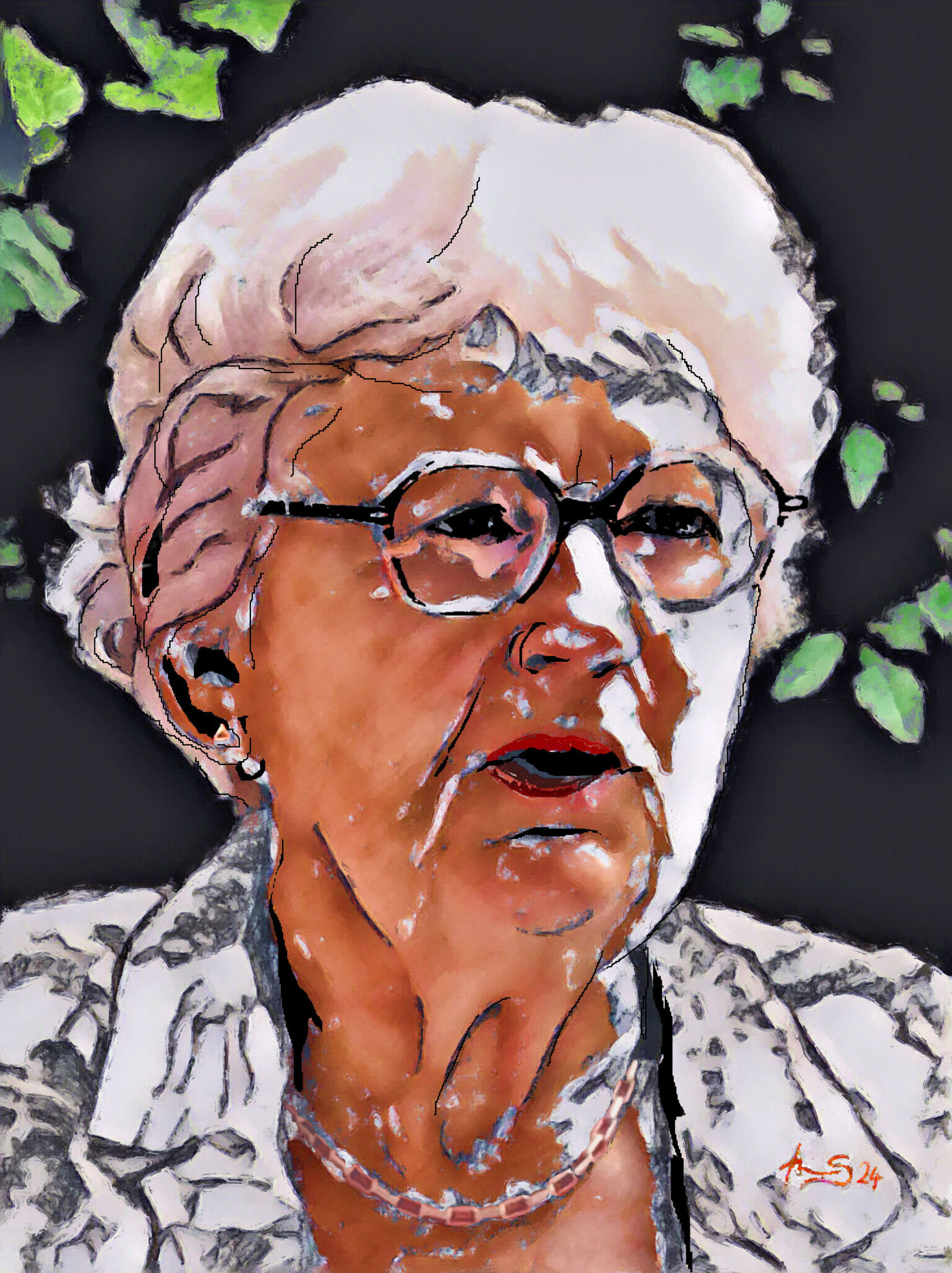 Portrettekening van een oudere vrouw