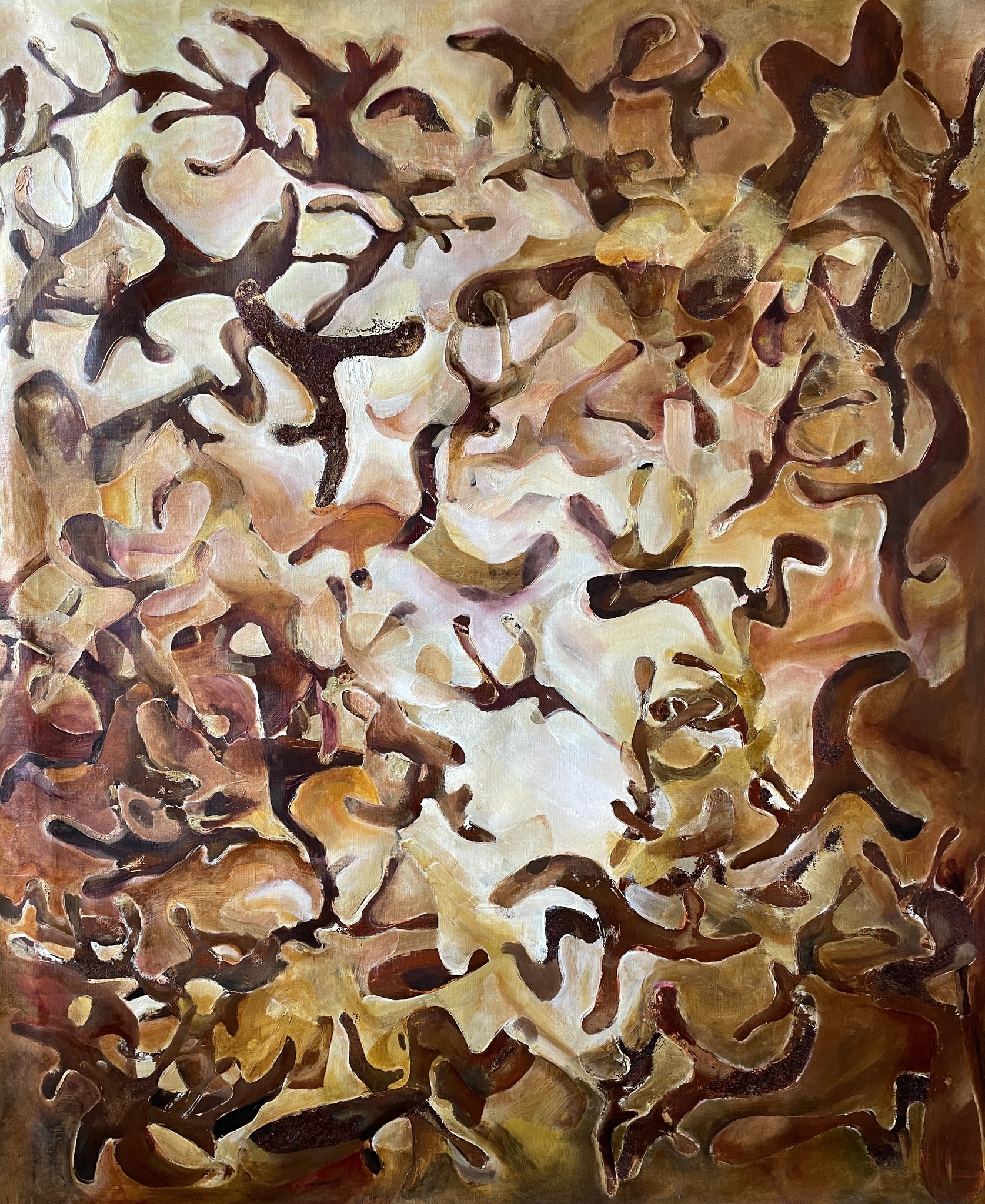 Een fascinerend schilderij, de goud bruine tinten brengen de warmte van de aarde over, terwijl de abstracte primitieve vormen van mijn muzieknoten de essentie van oude Afrikaanse muziek en rituelen oproepen. Het licht linksboven straalt en nodigt mijn muzieknoten uit om op te gaan in het licht en de aardse kracht te vieren.