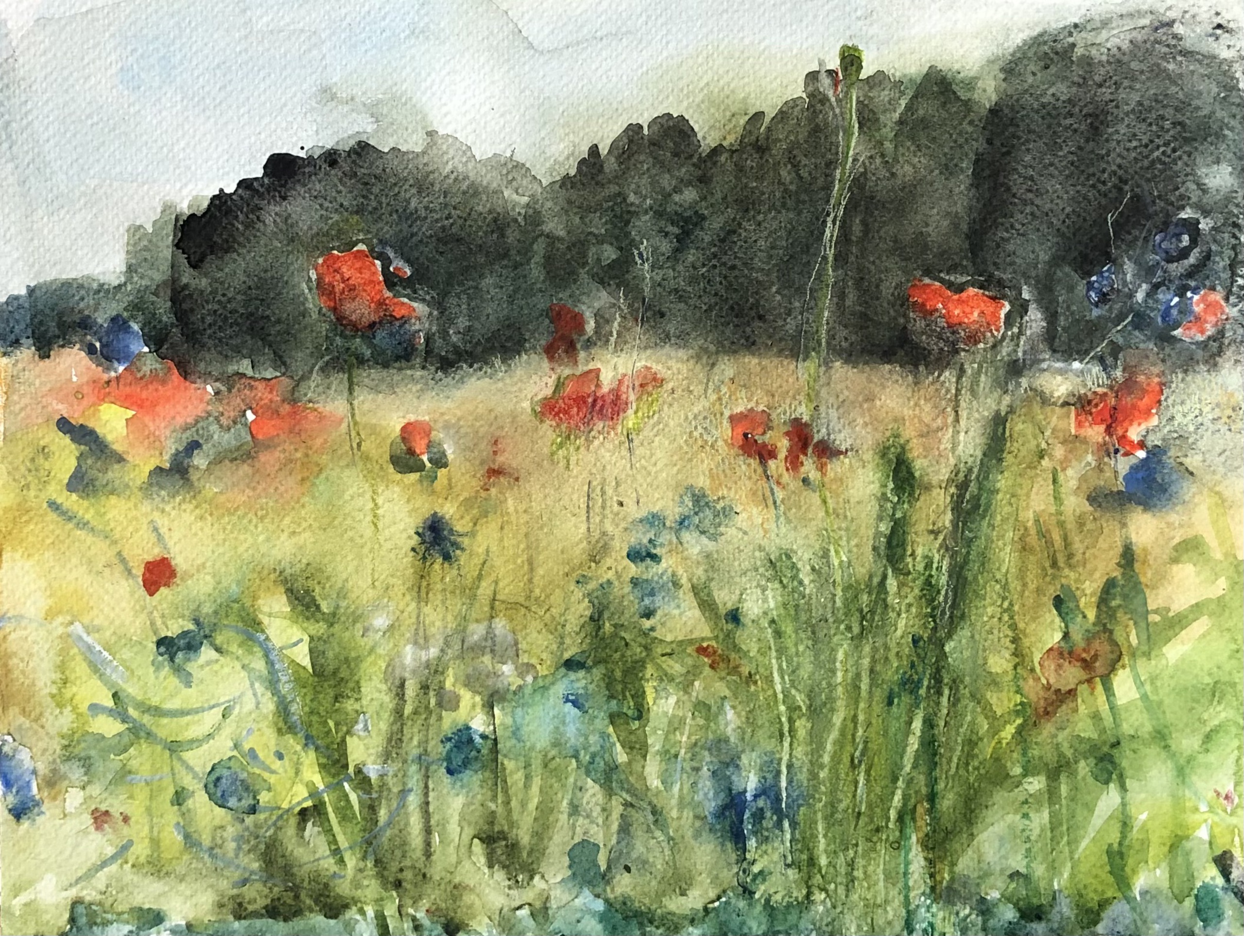 Papavers Korenbloemen Wildebloemen Landschap Aquarel