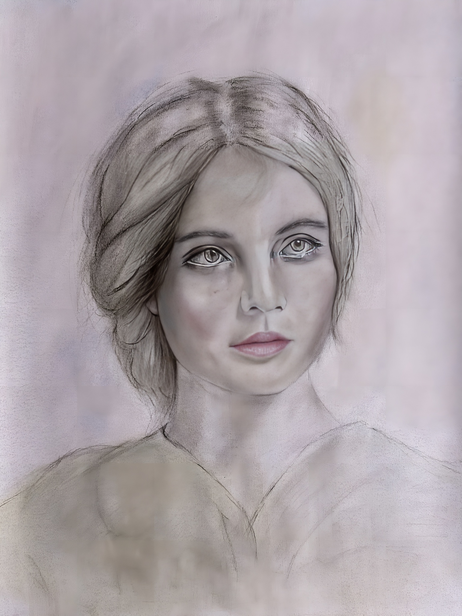 Expressief Portret Papier Realistisch Pastel Grafiet Vrouwenportret Bister