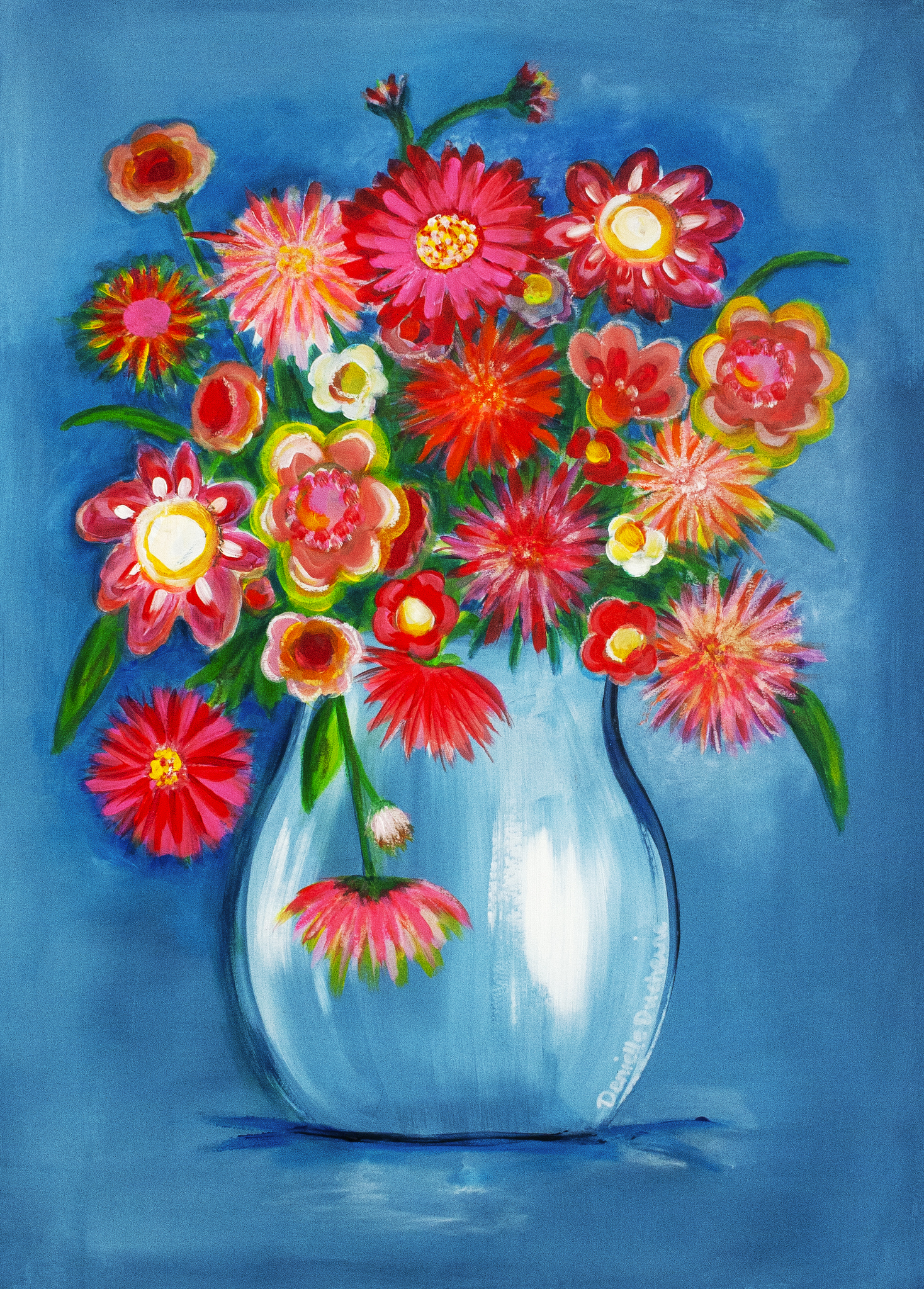 Ik ben Daniëlle Ducheine, de kleurverslaafde kunstenaar. Mijn portretten en bloemen knallen van het doek en brengen kleur, energie en vreugde in elke ruimte.