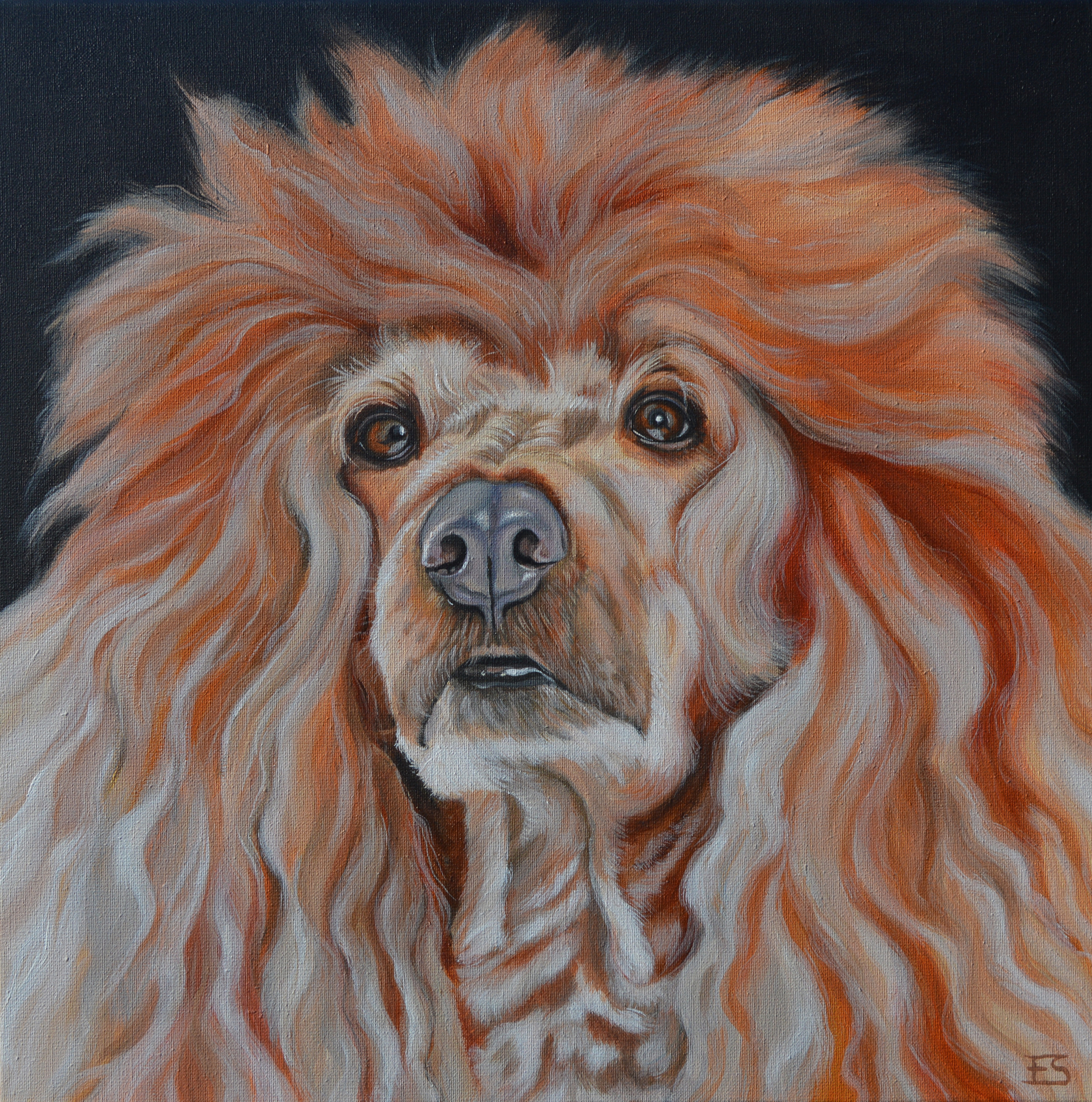Koningspoedel Courtney geschilderd voor- en van Wilma, als dank voor wat ze voor me gedaan heeft en doet.