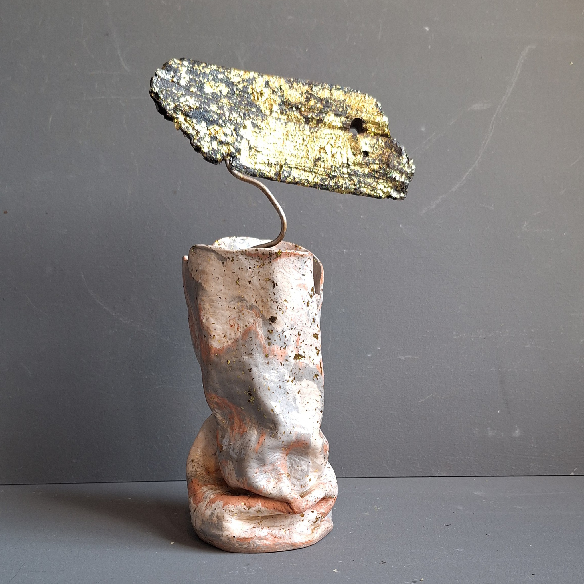 Kreukelvaasje met driftwood flower luchtdrogende klei.K21