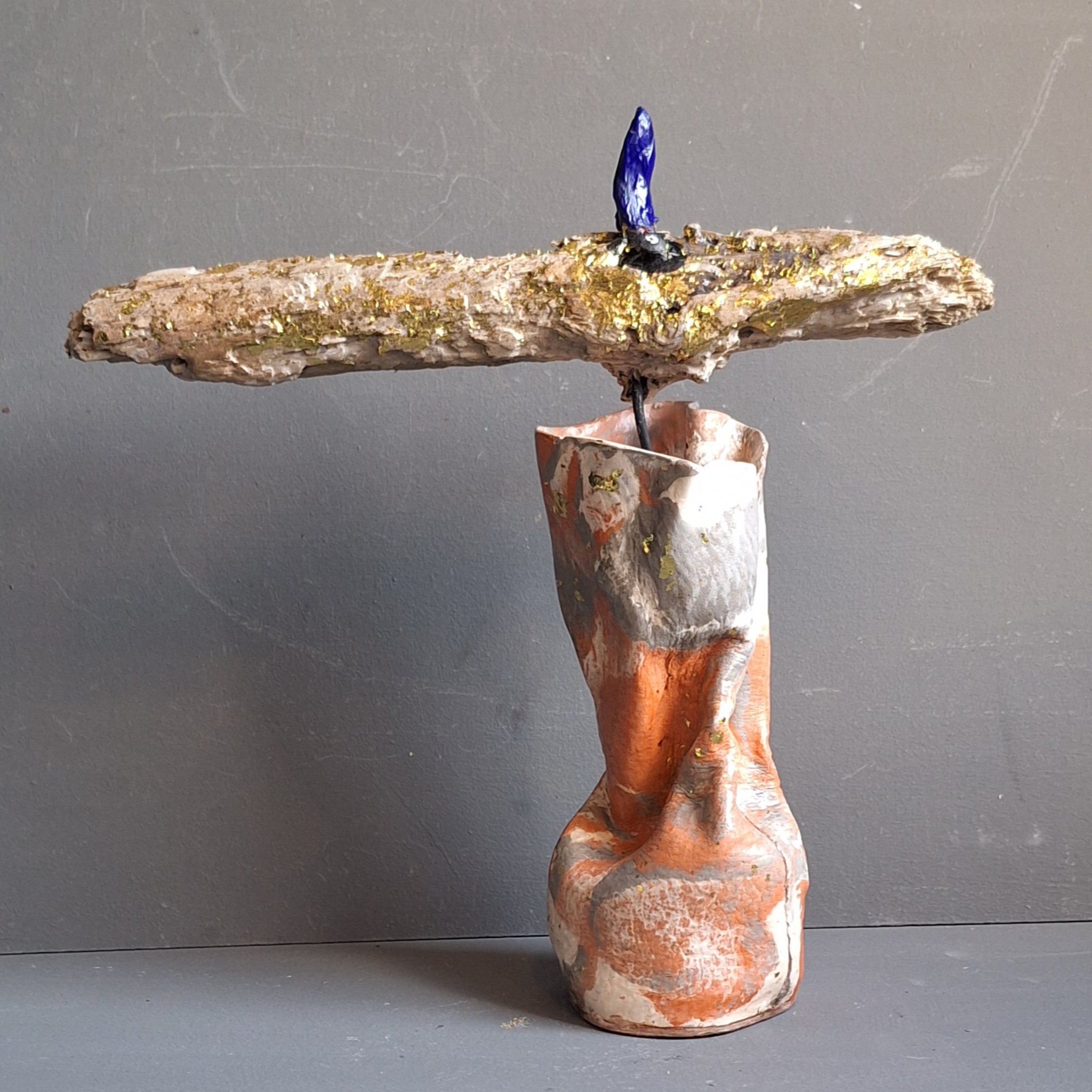 Kreukelvaasje met driftwood flower luchtdrogende klei.K32