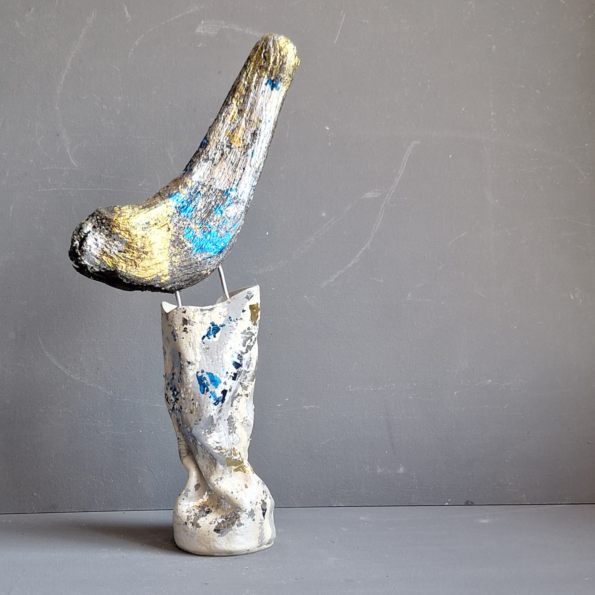 Kreukelvaasje met driftwood flower luchtdrogende klei.K37