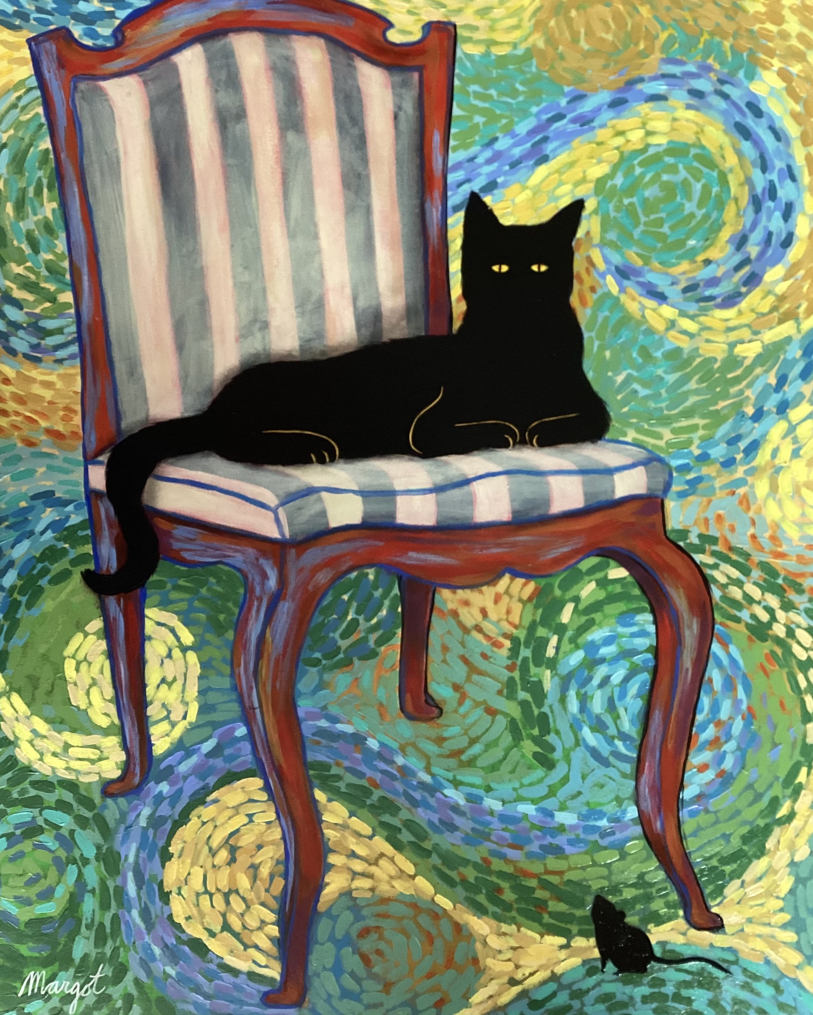 Margot kan zich niet tot één stijl beperken. Ze flitst van portretten naar collages naar abstractie naar illustraties. Het is maar net hoe de pet staat. Maar één ding staat vast: kunst is haar passie!
