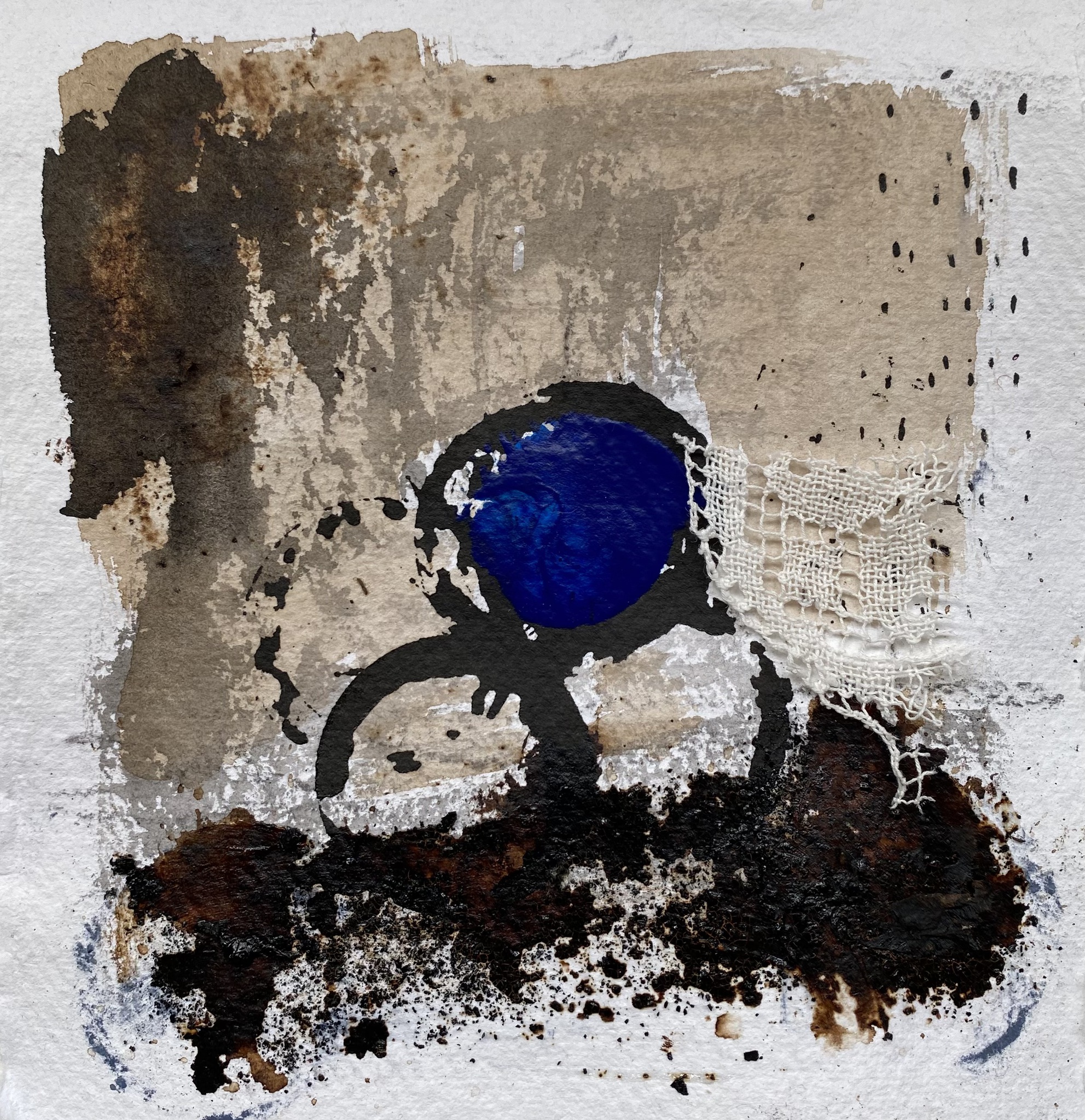 Collage op handmade cotton met Notenbolster Bister - natuur en acryl verf