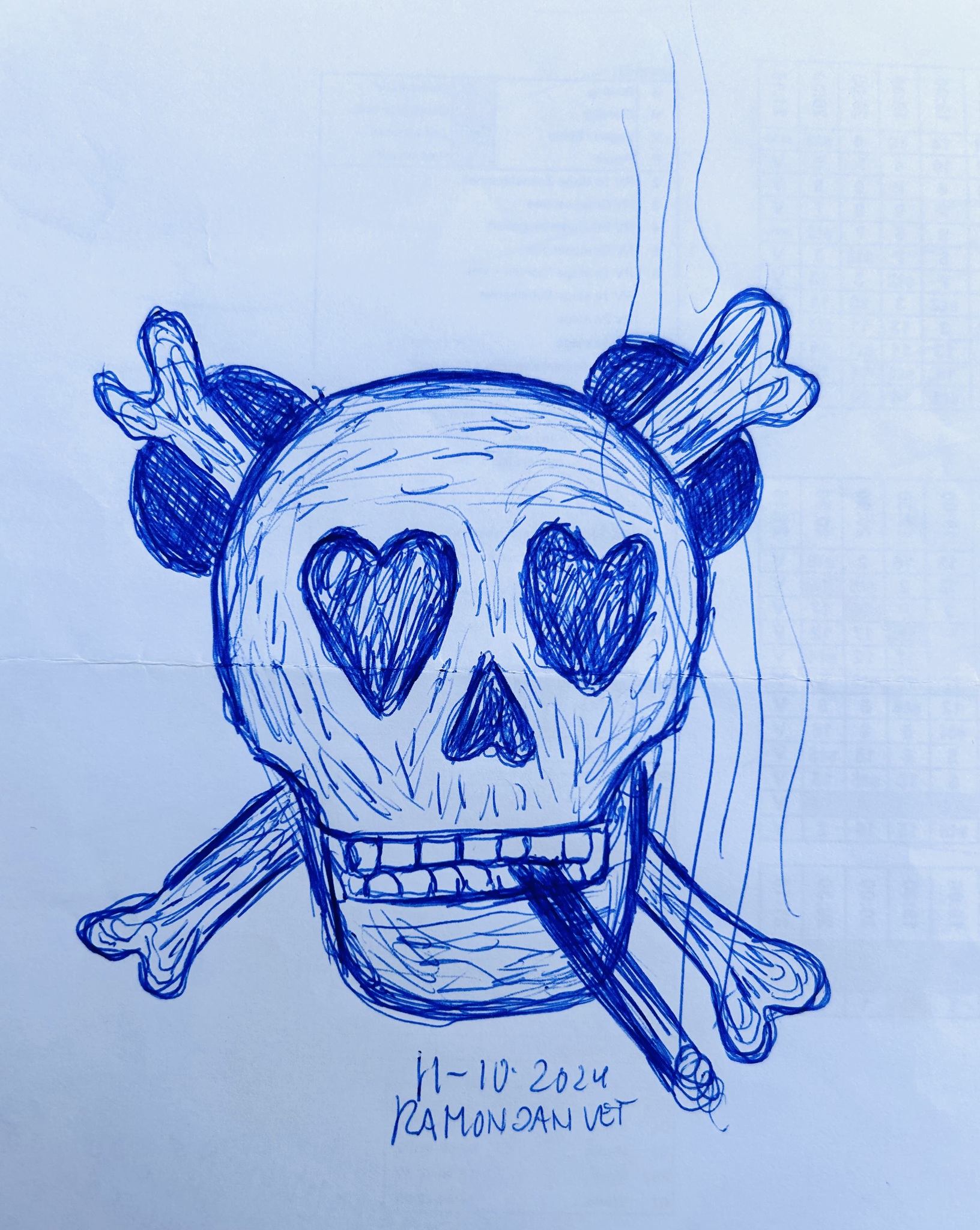 Smoking Skull Vet Draw Kunst Art Cartoon Illustratie