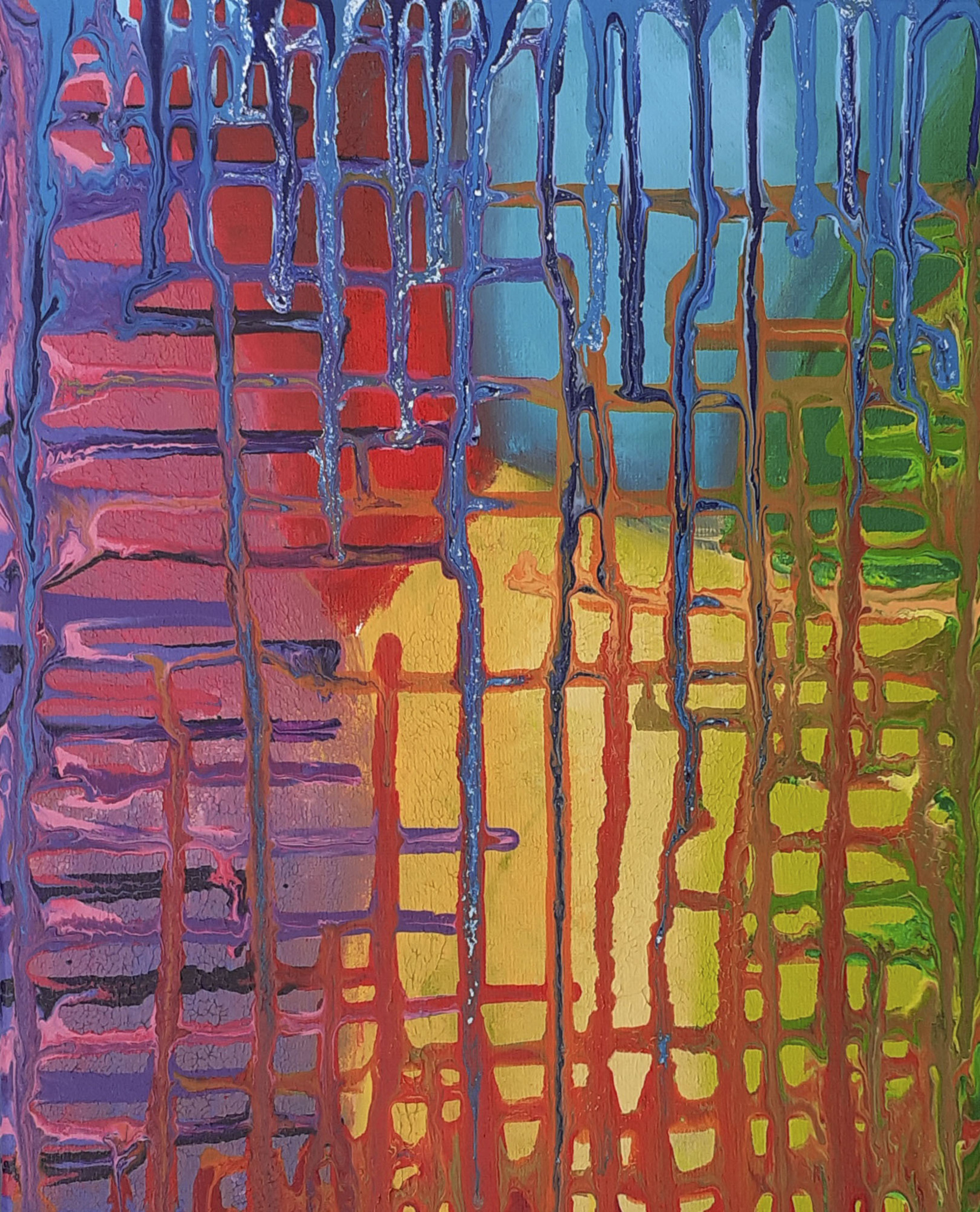 Een mix van technieken en stijlen , van wild abstract, naar figuratief naar strak bijna grafisch.