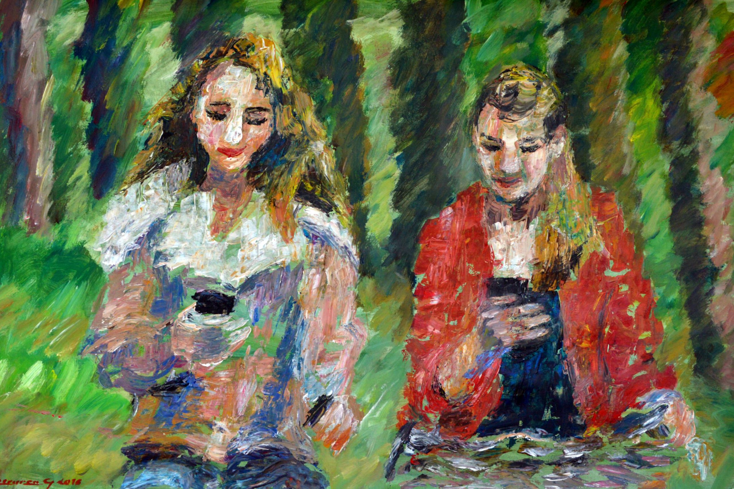 Groen Meisjes Mobieltjes Tokkelen