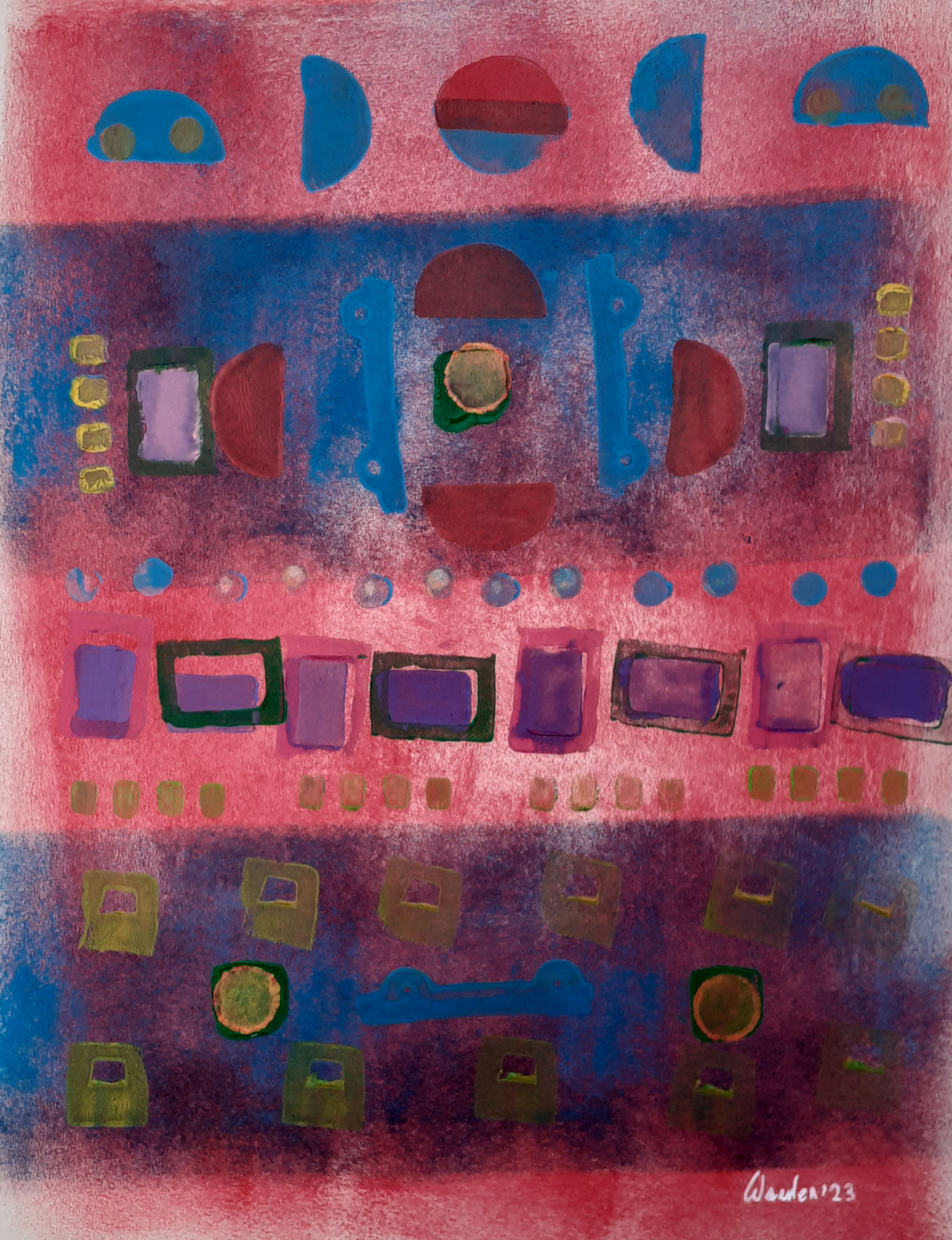 Een mix van technieken en stijlen , van wild abstract, naar figuratief naar strak bijna grafisch.