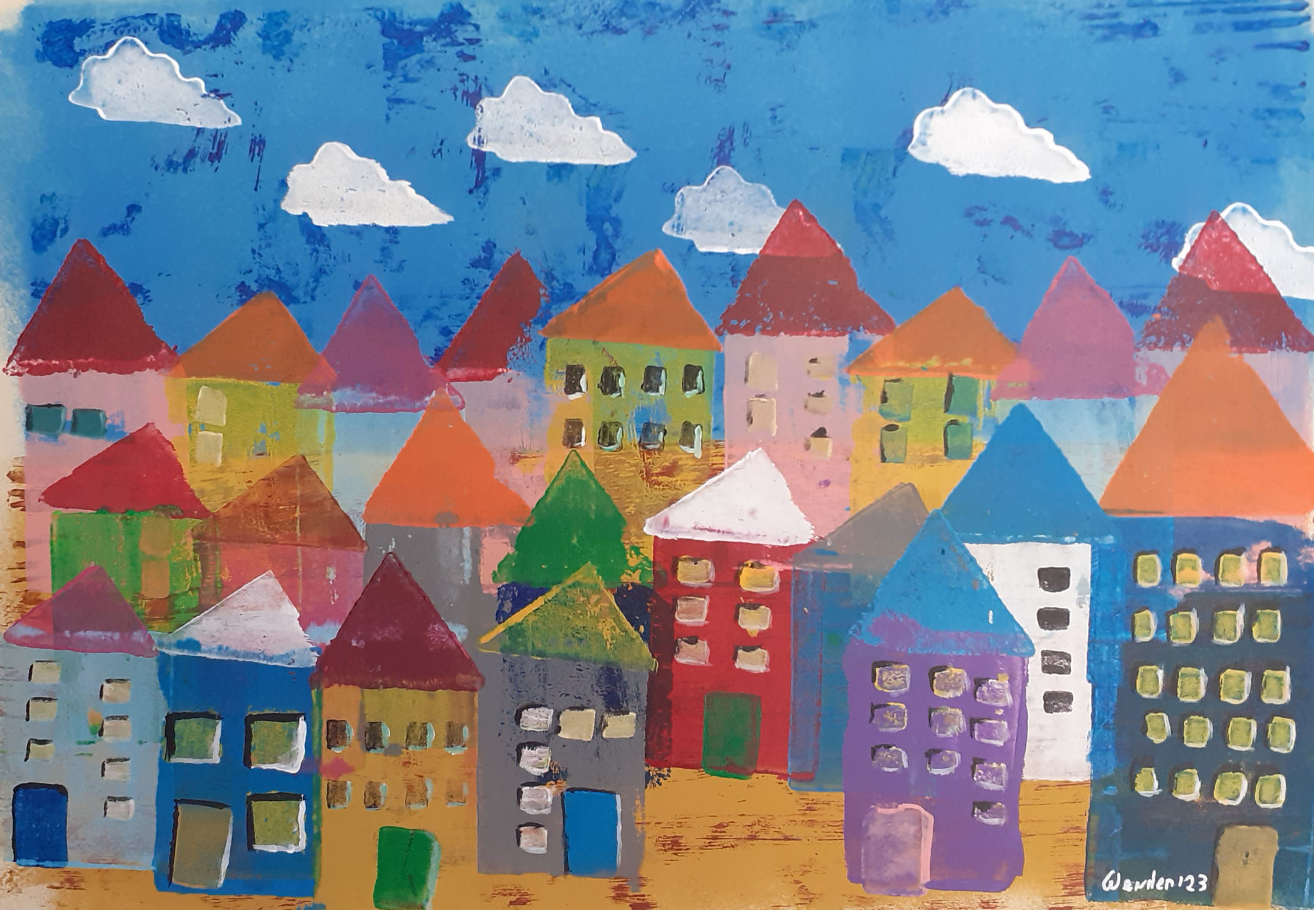 Een mix van technieken en stijlen , van wild abstract, naar figuratief naar strak bijna grafisch.