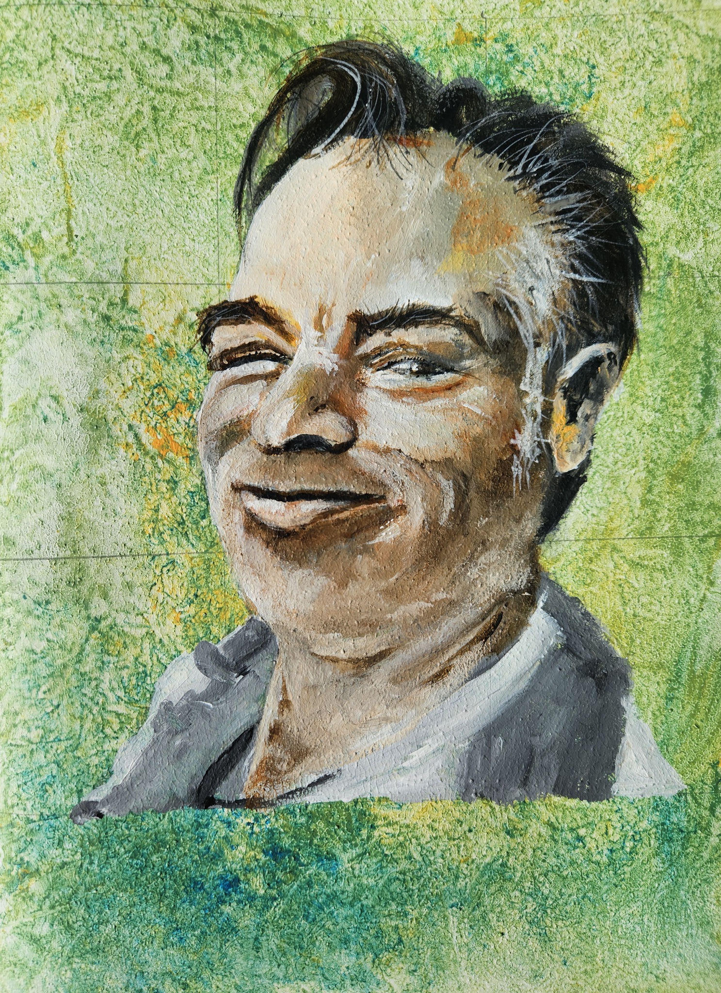 Een portret schildering van mijn partner Maarten in mijn schetsboek