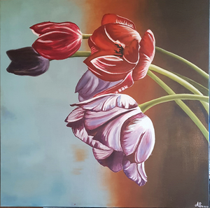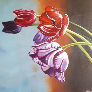 Hollandse tulpen zijn mijn kenmerk; zo breng ik wat kleur en dynamiek in de wereld. Ik maak met liefde ook een schilderij voor u. Alle onderwerpen zijn mogelijk, behalve portretten.