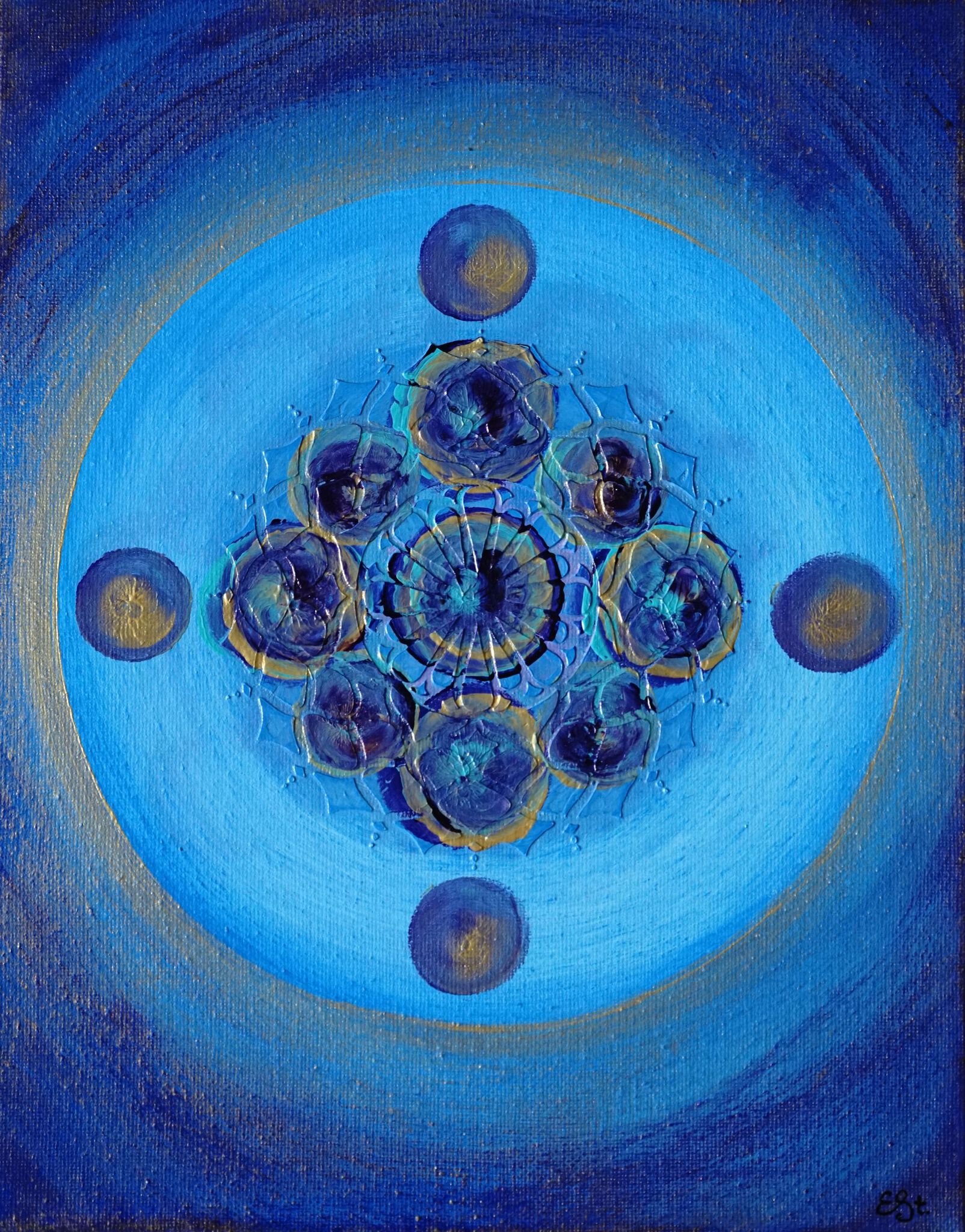 Acryl Spiritueel Mandala Blauw Paars Goud Energie
