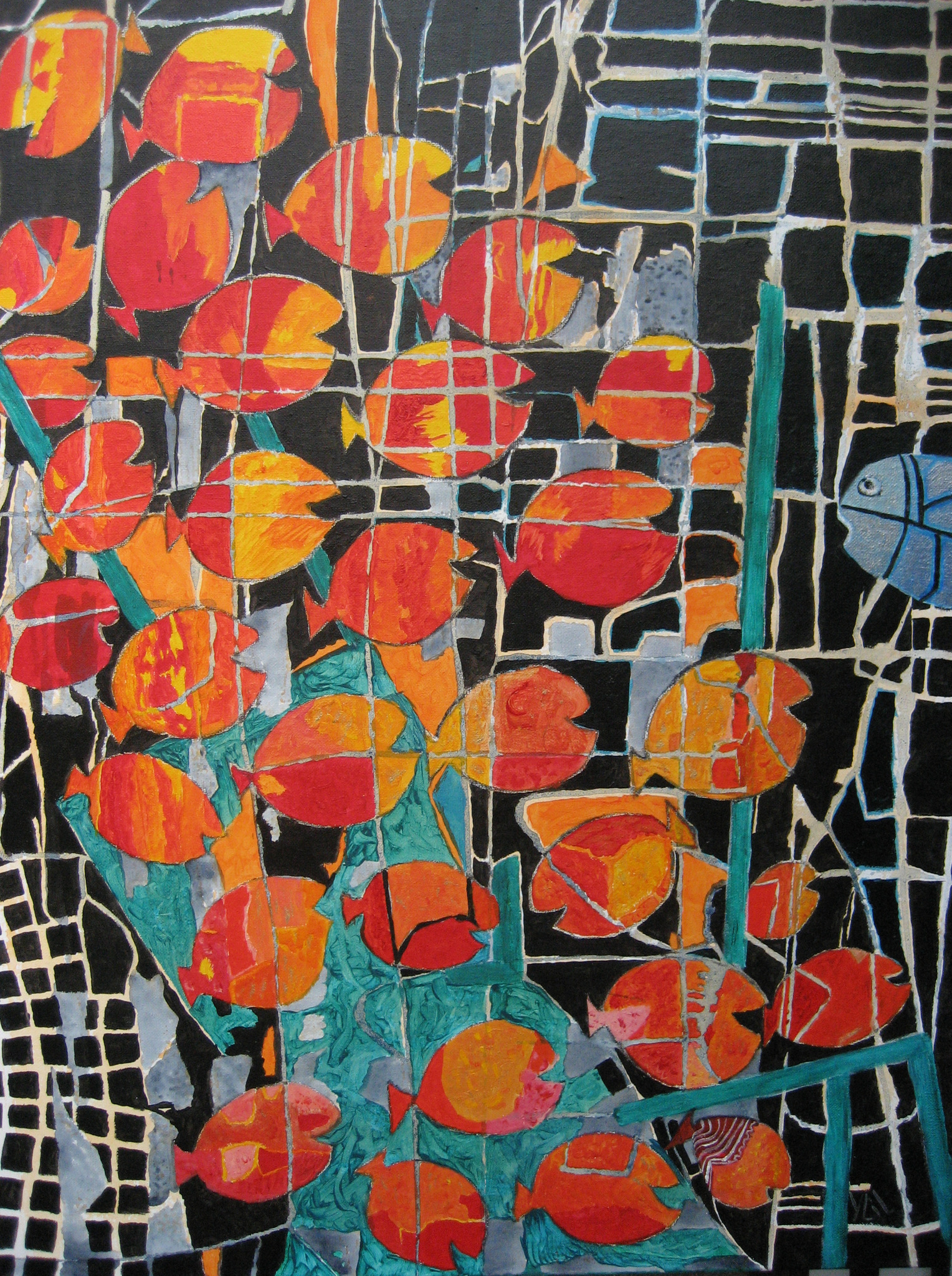 Bij het schilderen van dit werk bevond ik mij in een speelveld van heldere kleuren en ontelbare mogelijkheden.