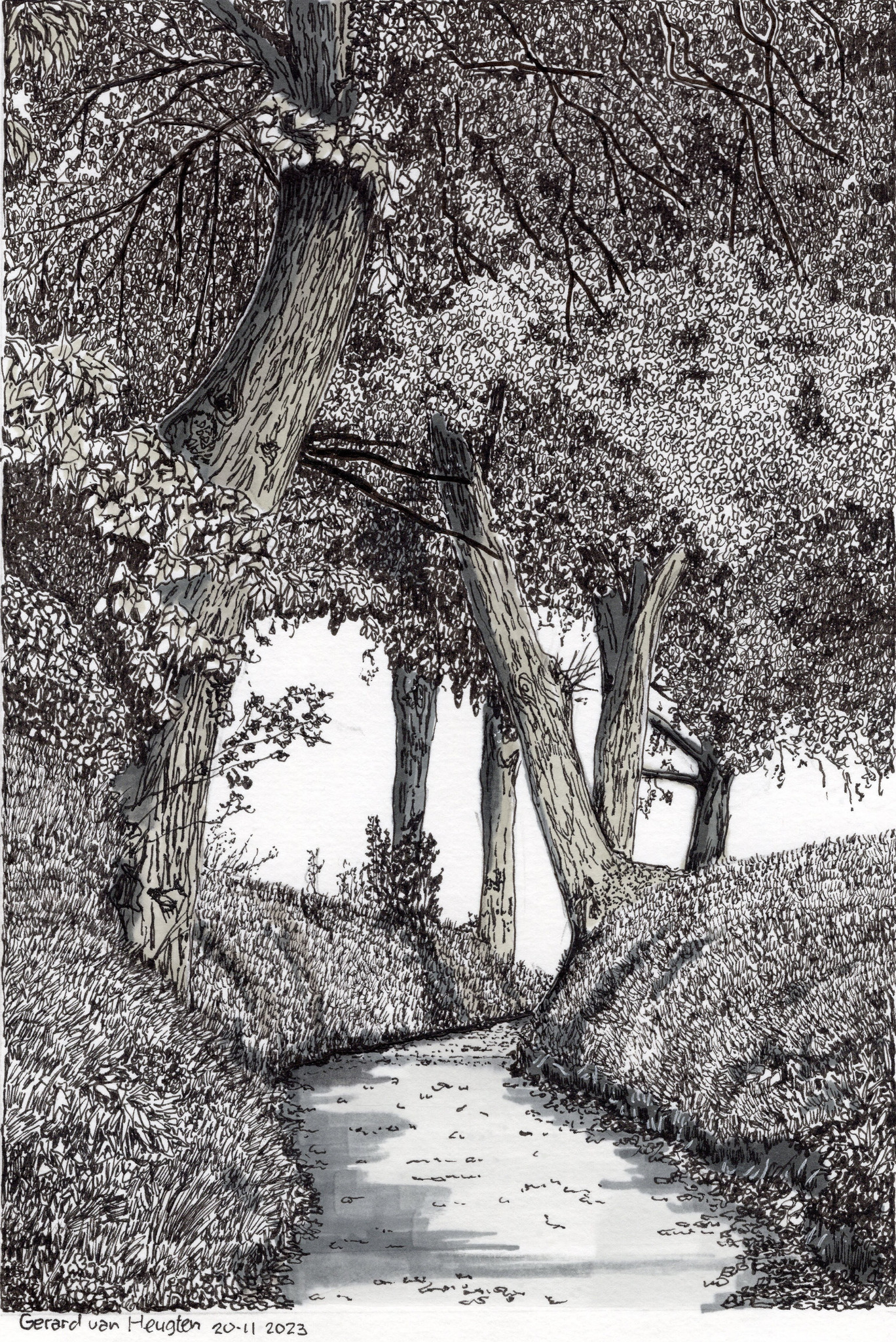Tekening Realistisch Natuur Bos Sfeer Weg Pentekening Holle Paadje