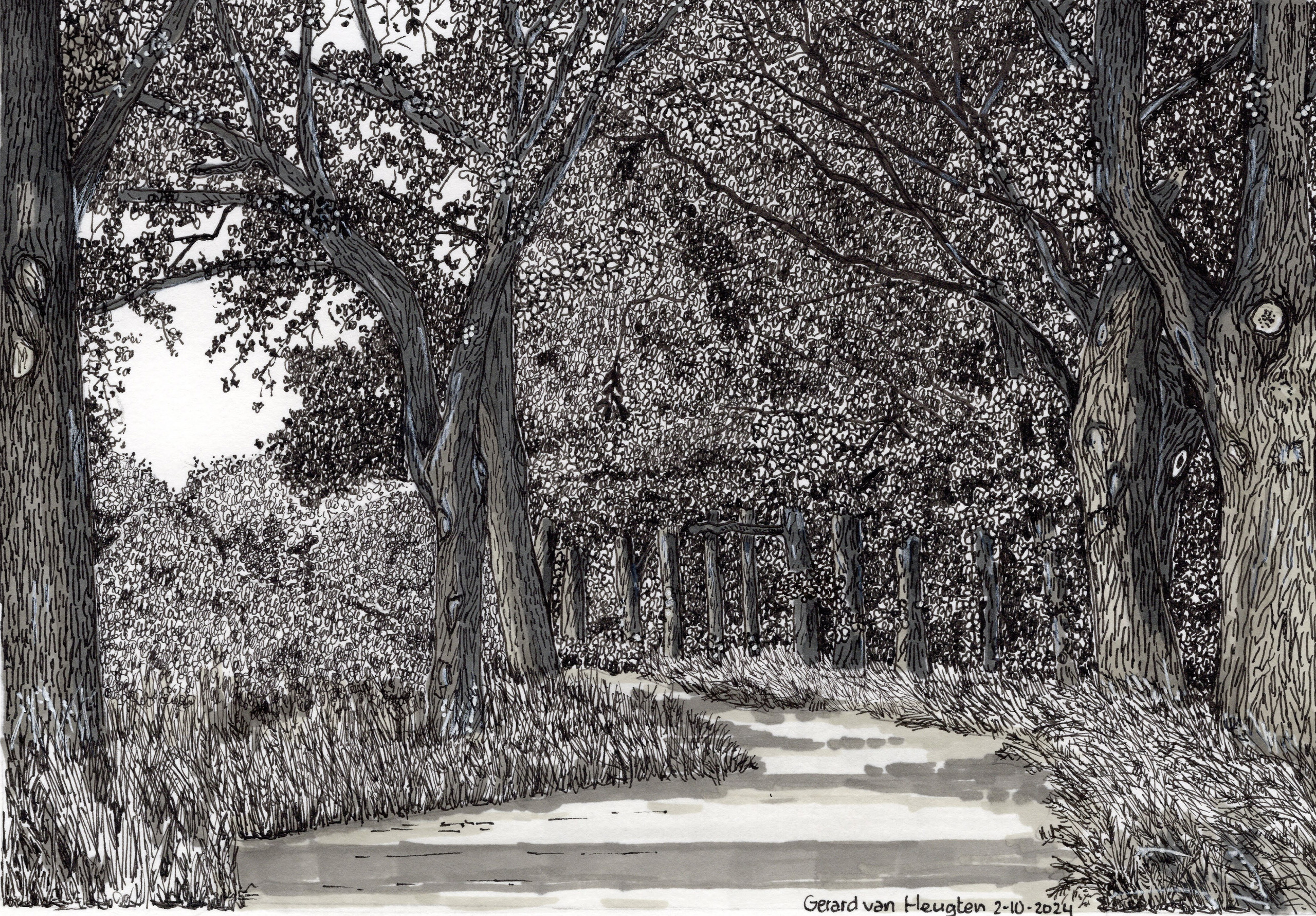 Tekening Realistisch Natuur Bos Sfeer Pentekening Paadje