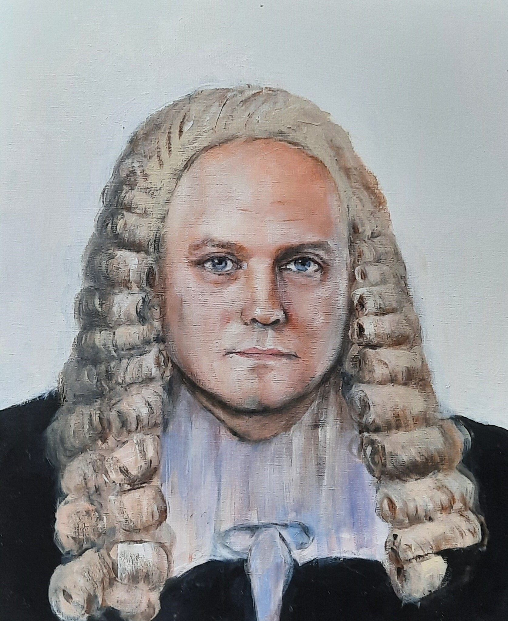 Deze hoge functionaris heeft een pruik op gekregen om zijn belangrijkheid tot uiting te brengen.