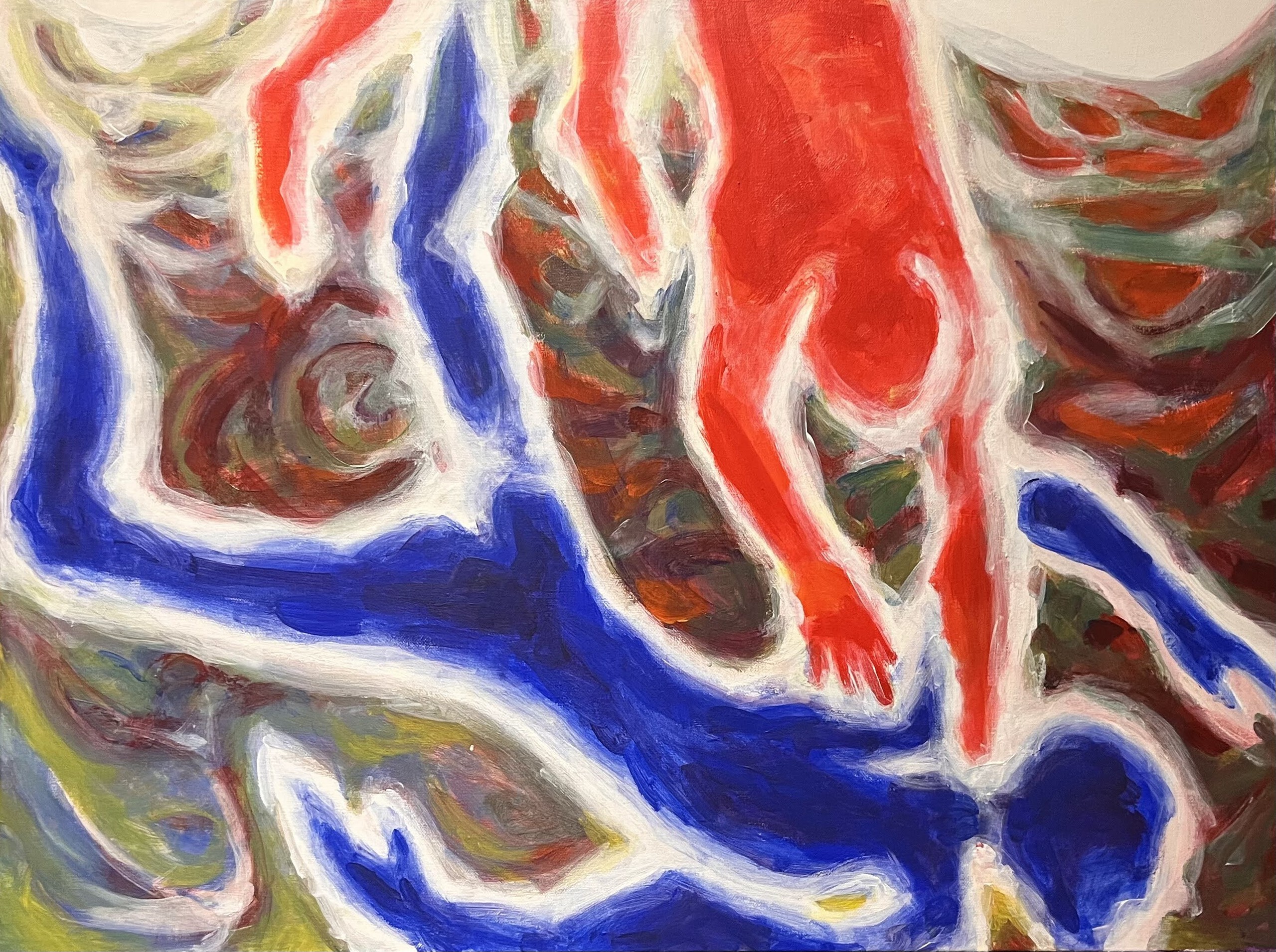 Mijn aquarellen en (acryl)schilderijen hebben vooral de natuurelementen en het menselijk lichaam als vertrekpunt. Ze lopen vaak in elkaar over: waar begint het een en eindigt het ander?