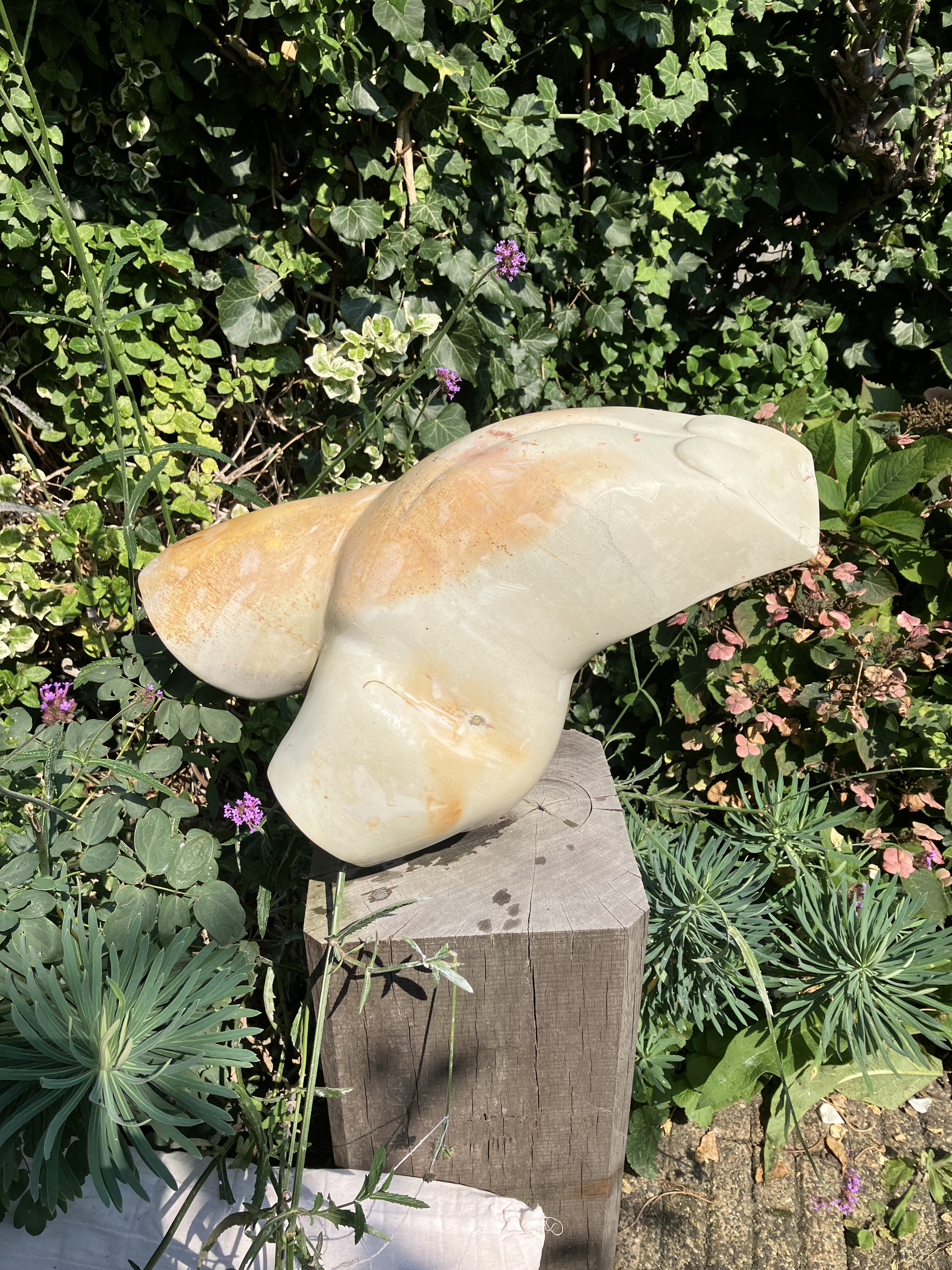 Zwevende torso, gehakt uit Kissii steen. Kissii wordt gedolven in Kenia. Zeer geschikt voor in de tuin, te koop met sokkel.