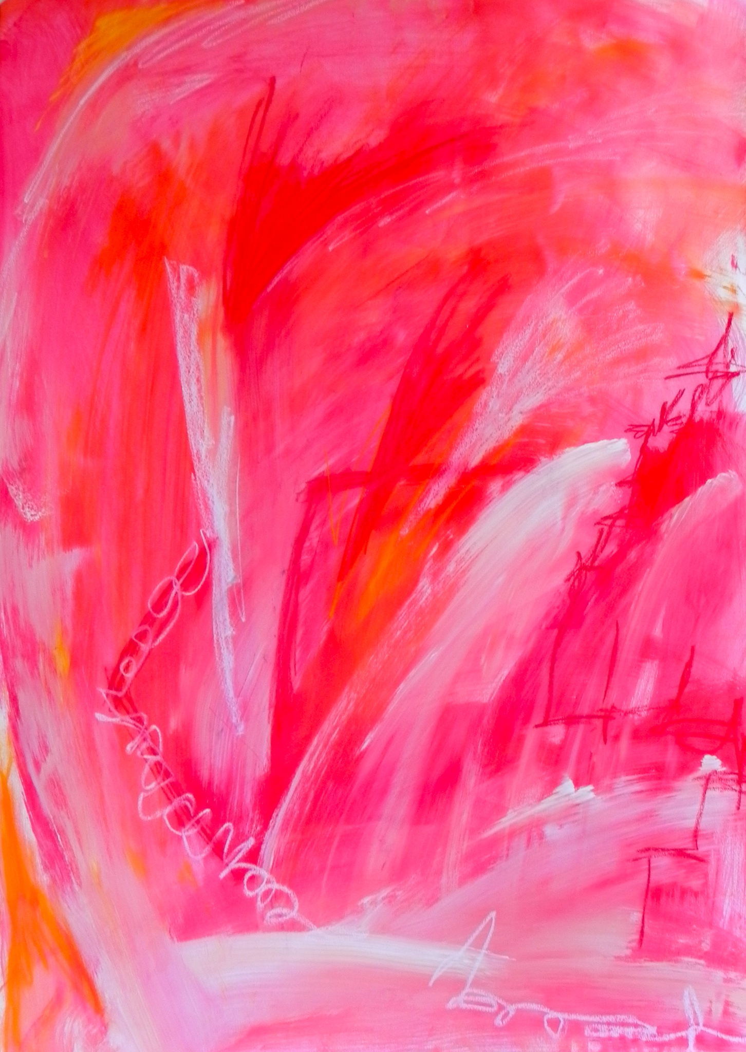 Spanje Mediterraan Landschap Onweer Wit Rood Roze Oranje Acrylverf Pastelkrijt Abstract Expressionisme