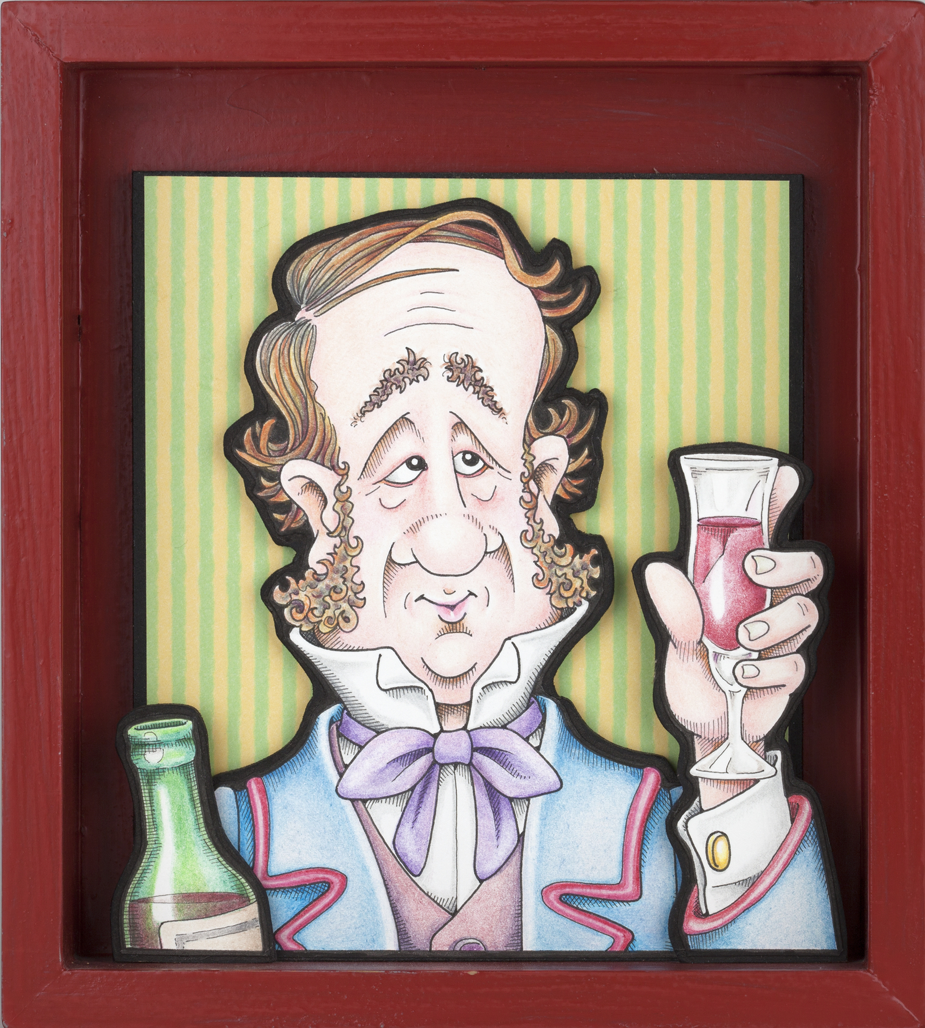 Het liefst maak ik verhalende tekeningen met wat humor, geplaatst in drie-dimensionale houten kistjes. Maar ook beeldhouwwerk, keramiek en textiel. Altijd figuratief met veel details.