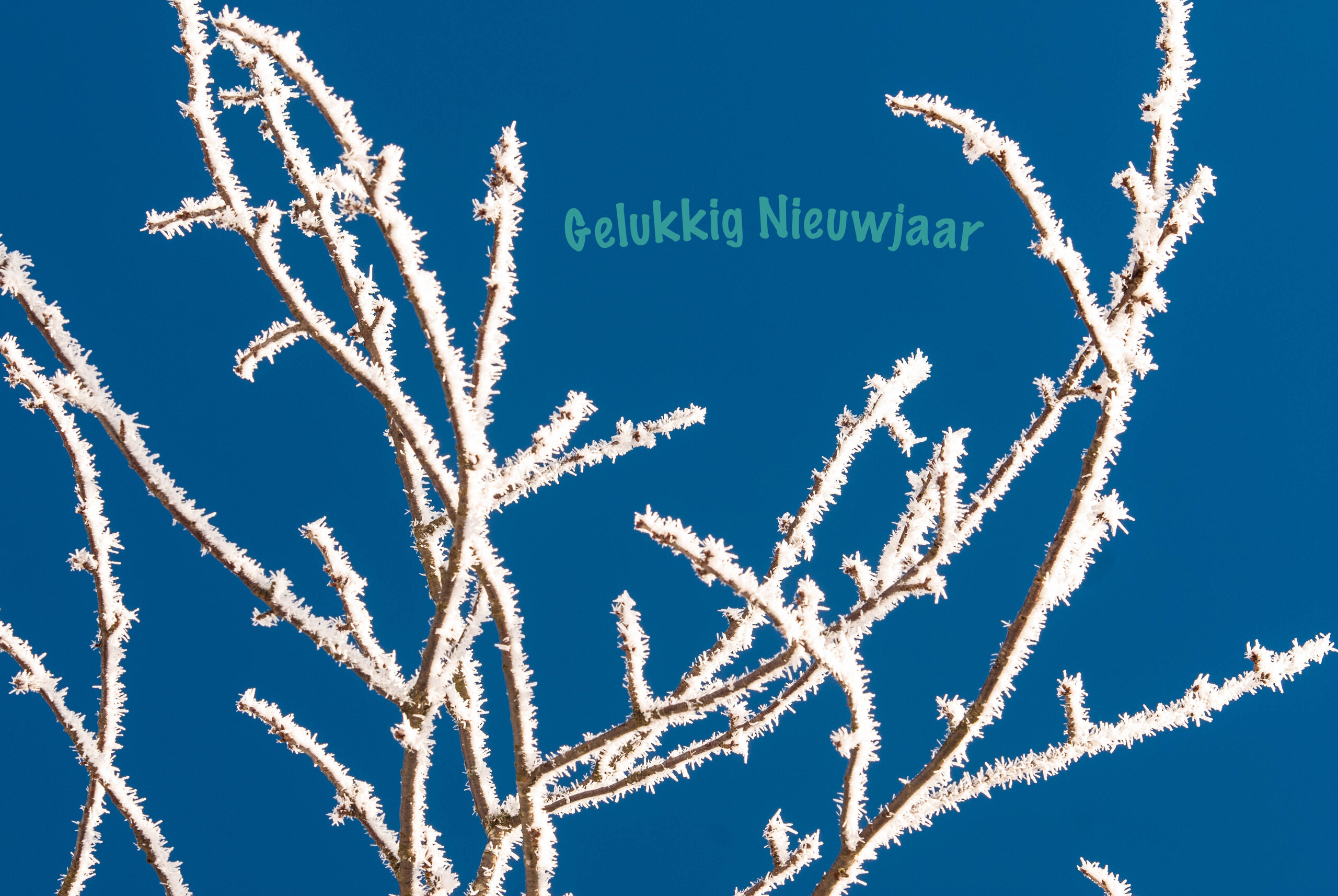 Blauw Sneeuw Takken Nieuw Wenskaart Jaar Nieuwjaar Kunstkaart