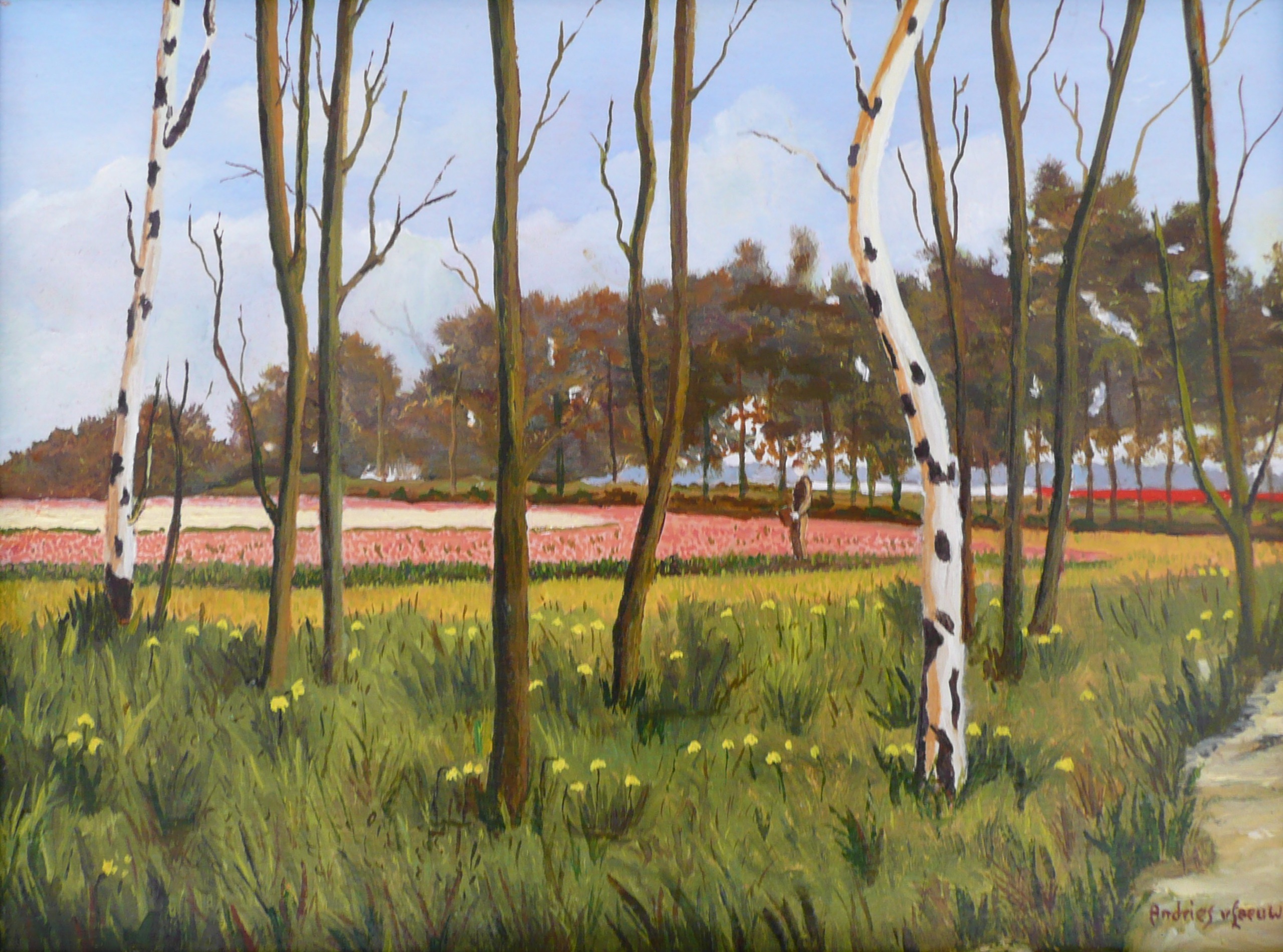 Andries van Leeuwen Kunstschilder uit Katwijk aan Zee. Schilderde op de manier van Rembrandt en Mesdag. Liefhebber van maritiem werk, duinlandschappen, tulpenvelden en bosgezichten.