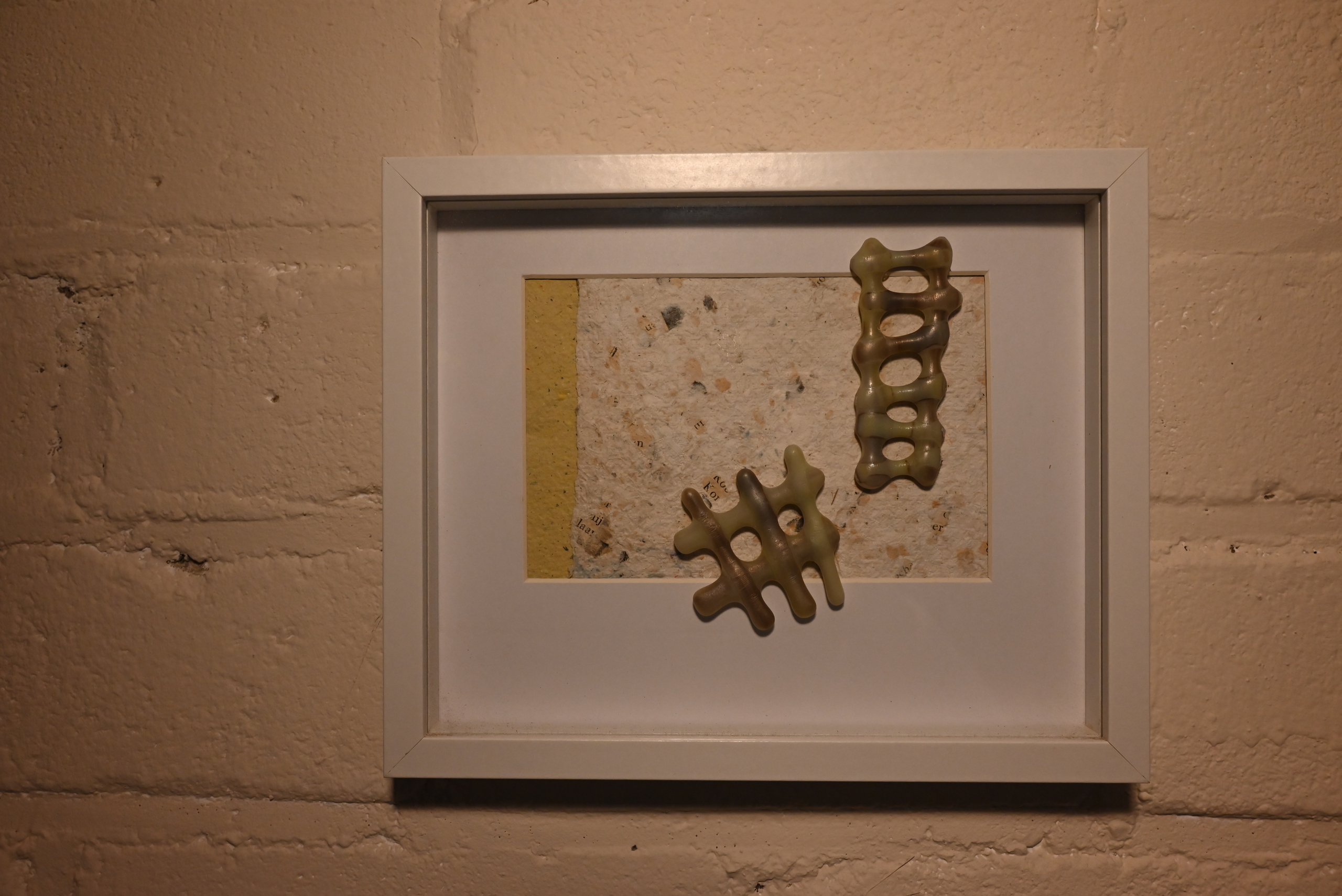 Schilderij Bruin Glas Papier Glasfusing Beige Ingelijst
