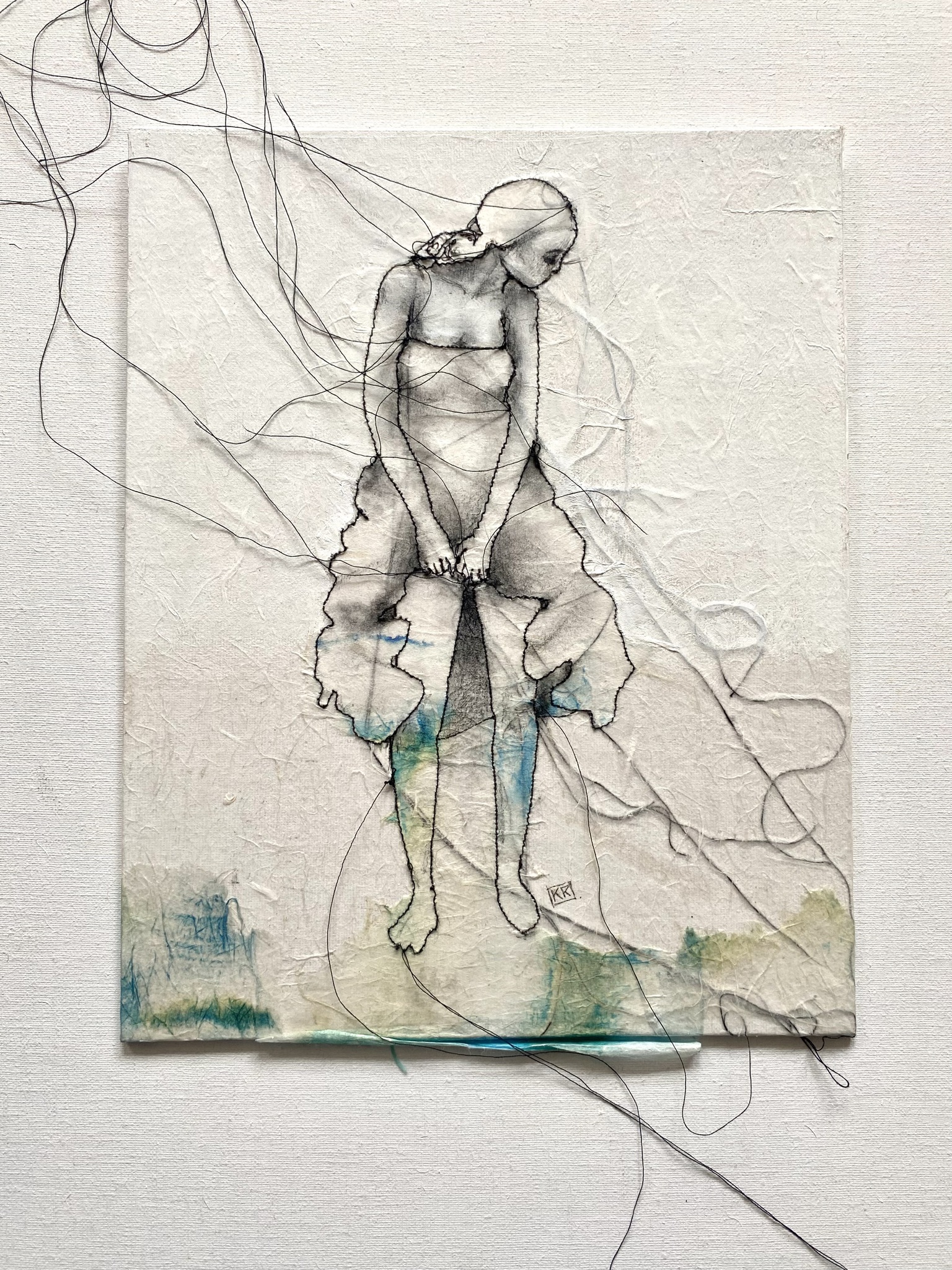 Afgestudeerd Monumentale Vormgeving aan de Academie Beeldende Kunsten Maastricht. (Maastricht Institute of Arts) Vrouwelijke figuren, sensualiteit, kracht en kwetsbaarheid in zwarte draden.